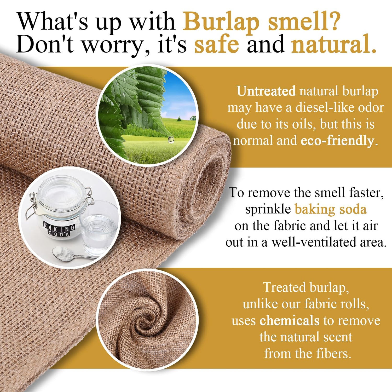 • Environmentally Conscious: Our burlap fabric by the yard is naturally grown from jute plants -- no synthetic materials and naturally biodegrade . Zero clean-up. Zero carbon emissions. Zero trash in landfills, which makes it a great choice for those looking to minimize their environmental impact