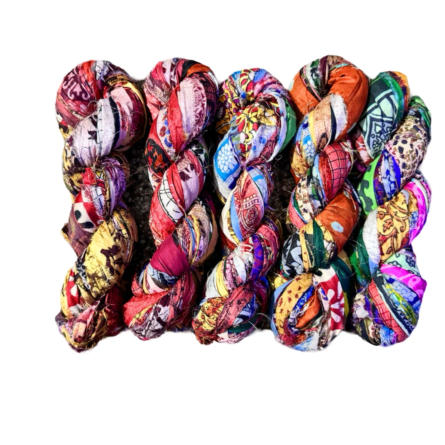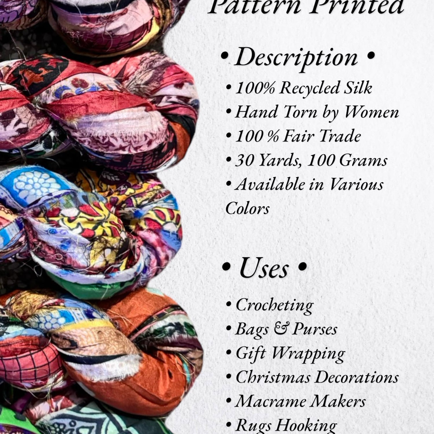 - 🎁【WIDE USES】Recycled Sari Silk Ribbon is Used for Christams Decorations, Gift Wrapping, Crocheting, Wedding, Weaving, Macrame Makers, Jewelry making, Bows, Bags, Shawls, Rugs Hooking, embroidery etc.