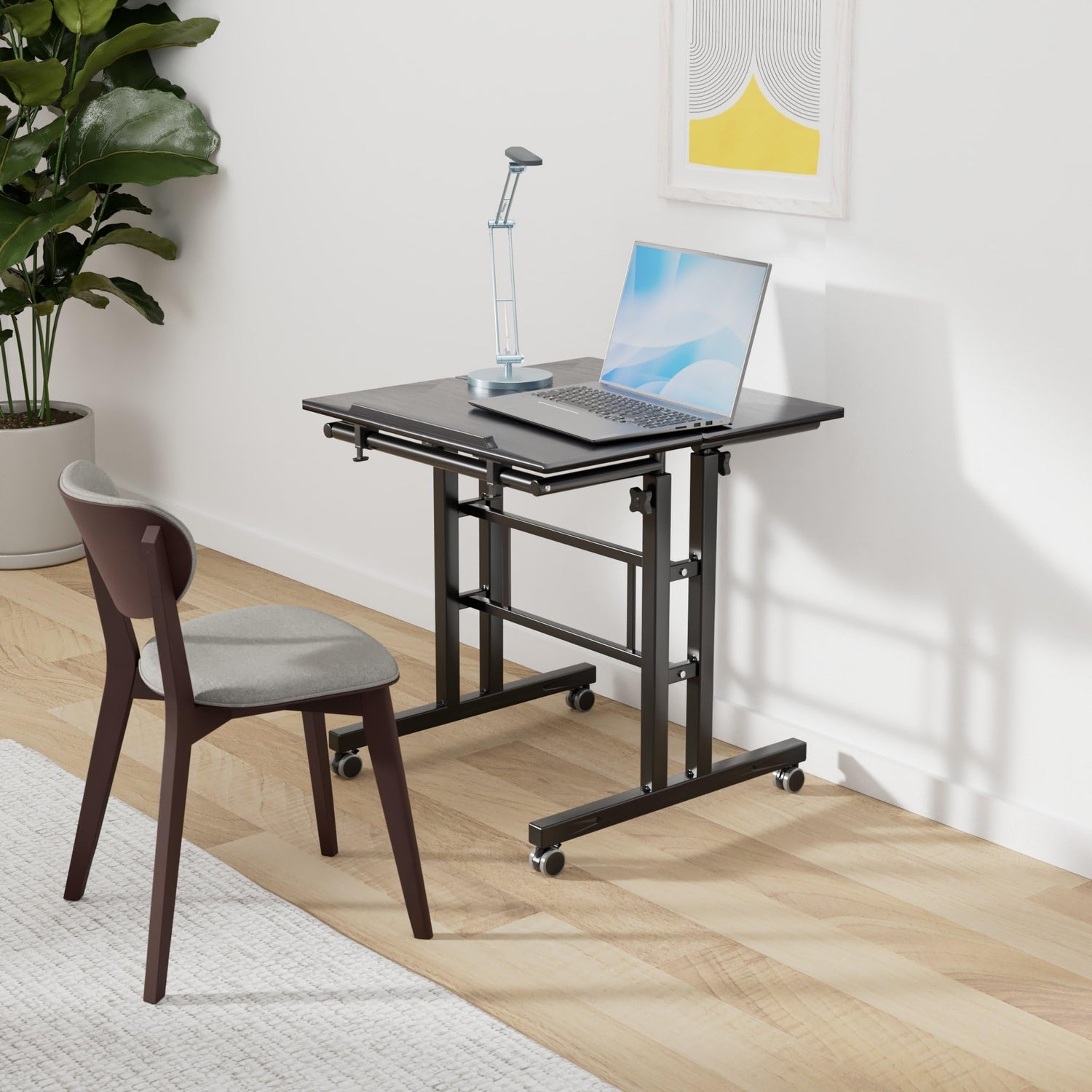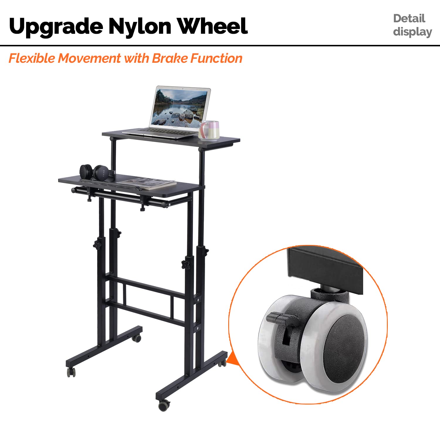 AIZ Double Table Mobile Standing Desk, Adjustable Computer Desk with Rolling Wheels, Portable Laptop Table for Standing or Sitting, Home Office Computer Workstation for Adults or Children