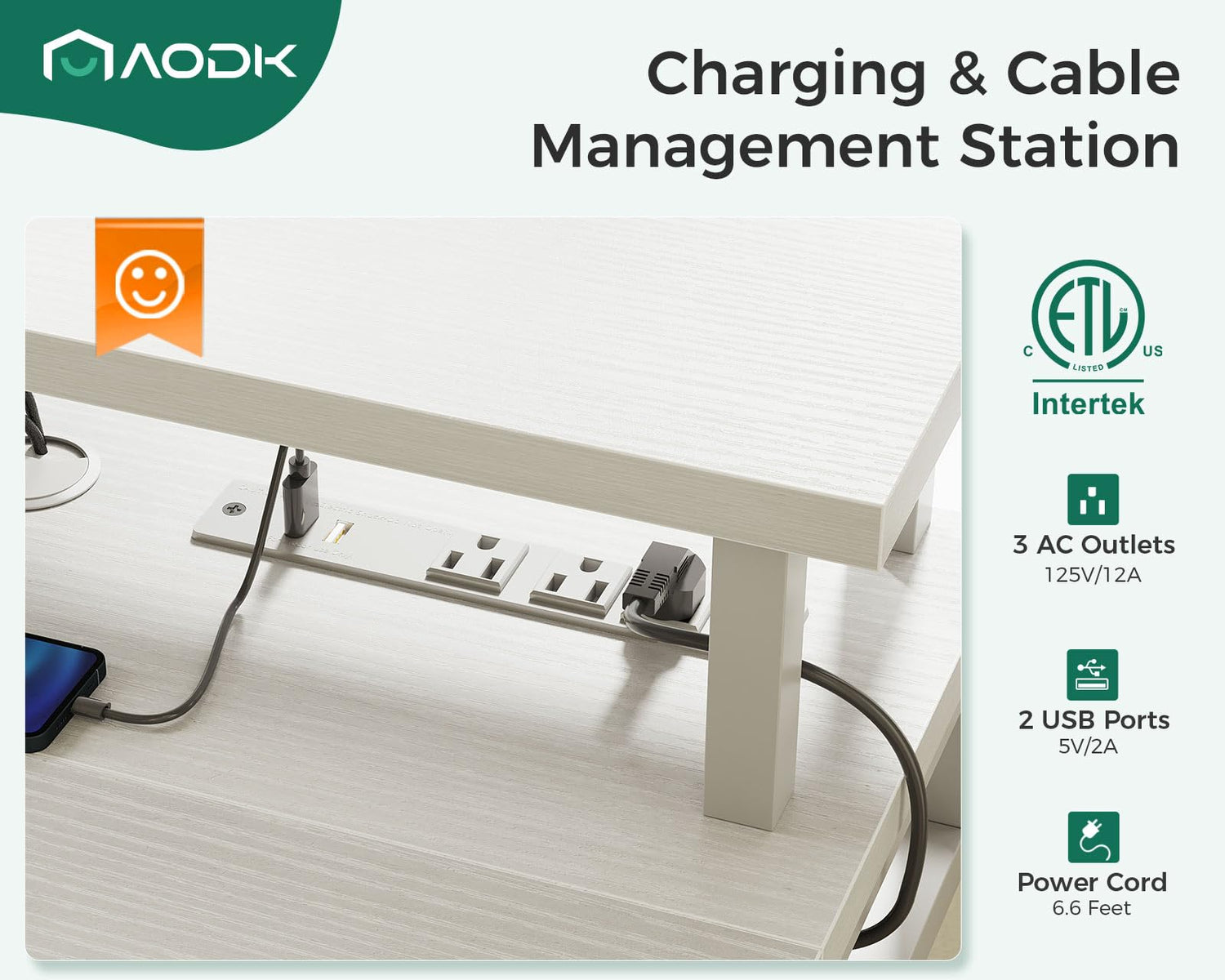 - Power & LED Lights: This AODK Standing desk includes a built-in power outlet with 3 Outlets & 2 USB Ports to charge your devices. Also, you can use the LED Lights to vary the 20 light modes to bring various atmospheres to your space.