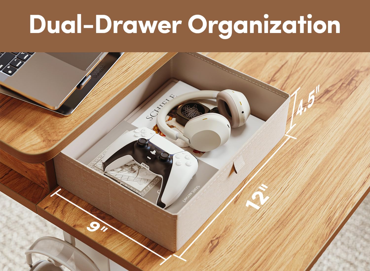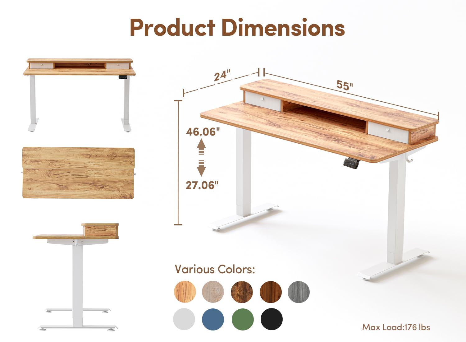 BANTI 55x24 Inch Electric Standing Desk with Double Drawers, Adjustable Height Stand Up Desk, Sit Stand Home Office Desk with Storage Shelf, Light Rustic Brown Top