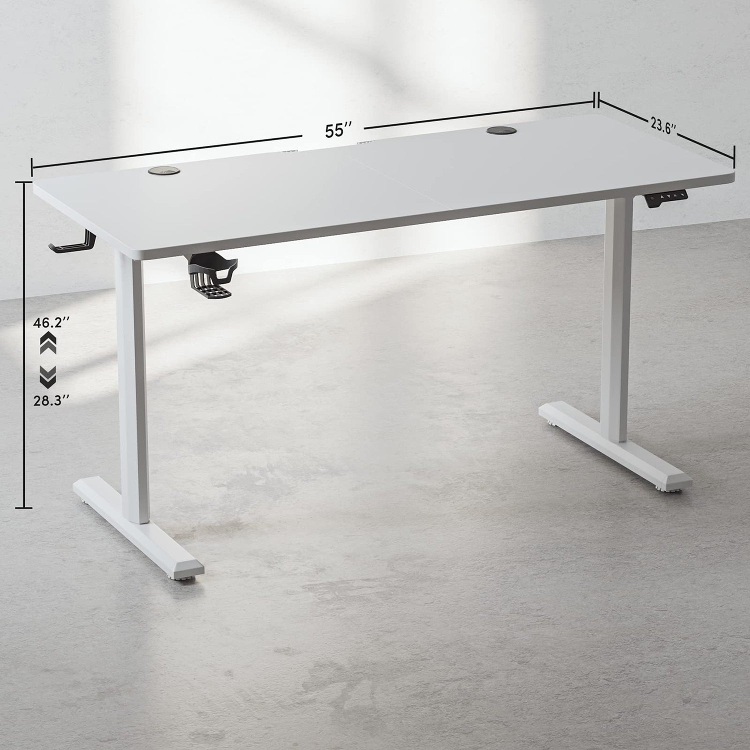 - Electric Height Adjustable: The desk has 2 preset buttons to customize your desired heights from 28.3" to 46.2", 2 button supports height memory and one reset button.