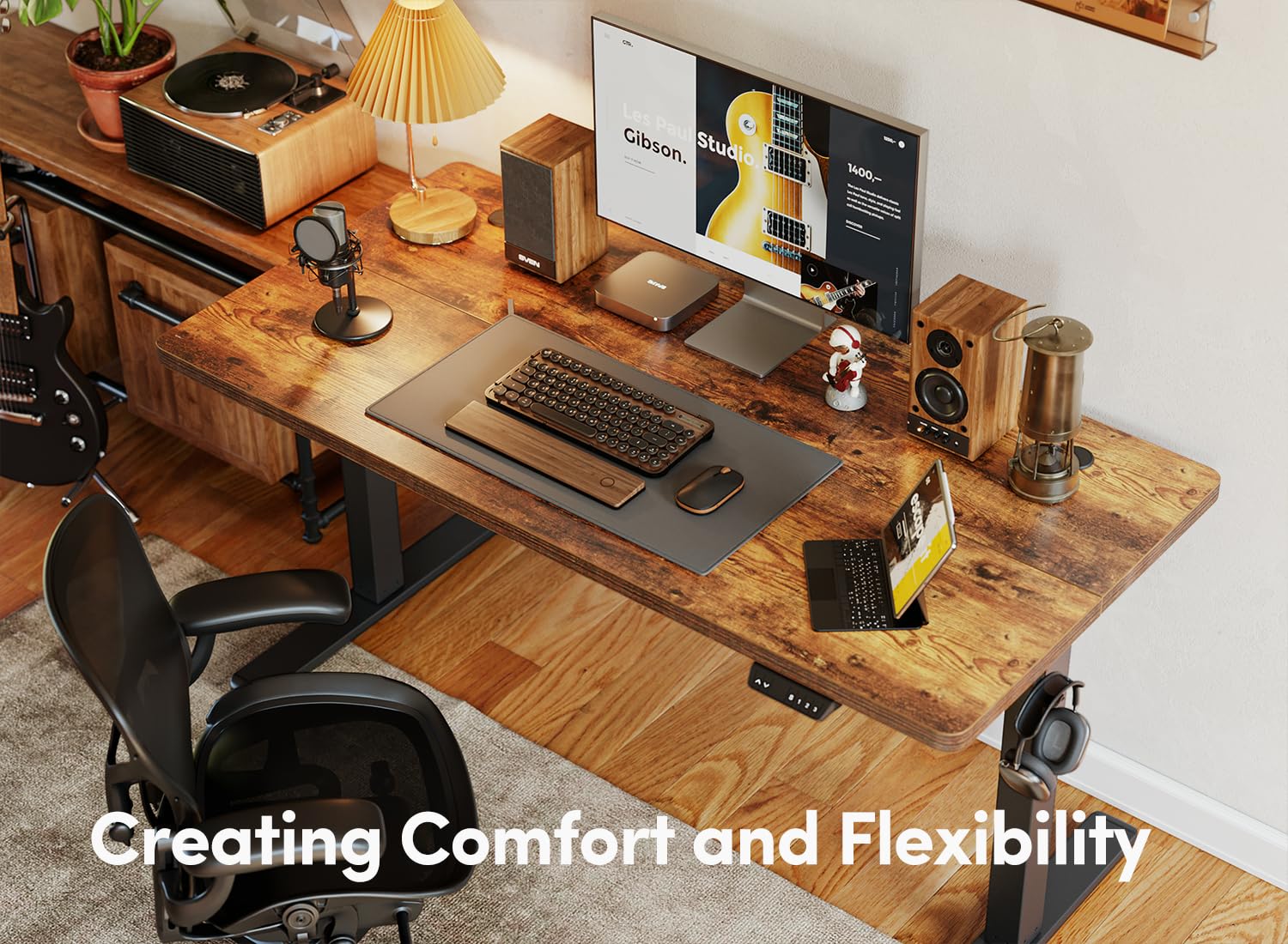 BANTI 63'' Standing Desk, Electric Stand up Height Adjustable Home Office Table, Sit Stand Desk with Splice Board, Rustic Brown