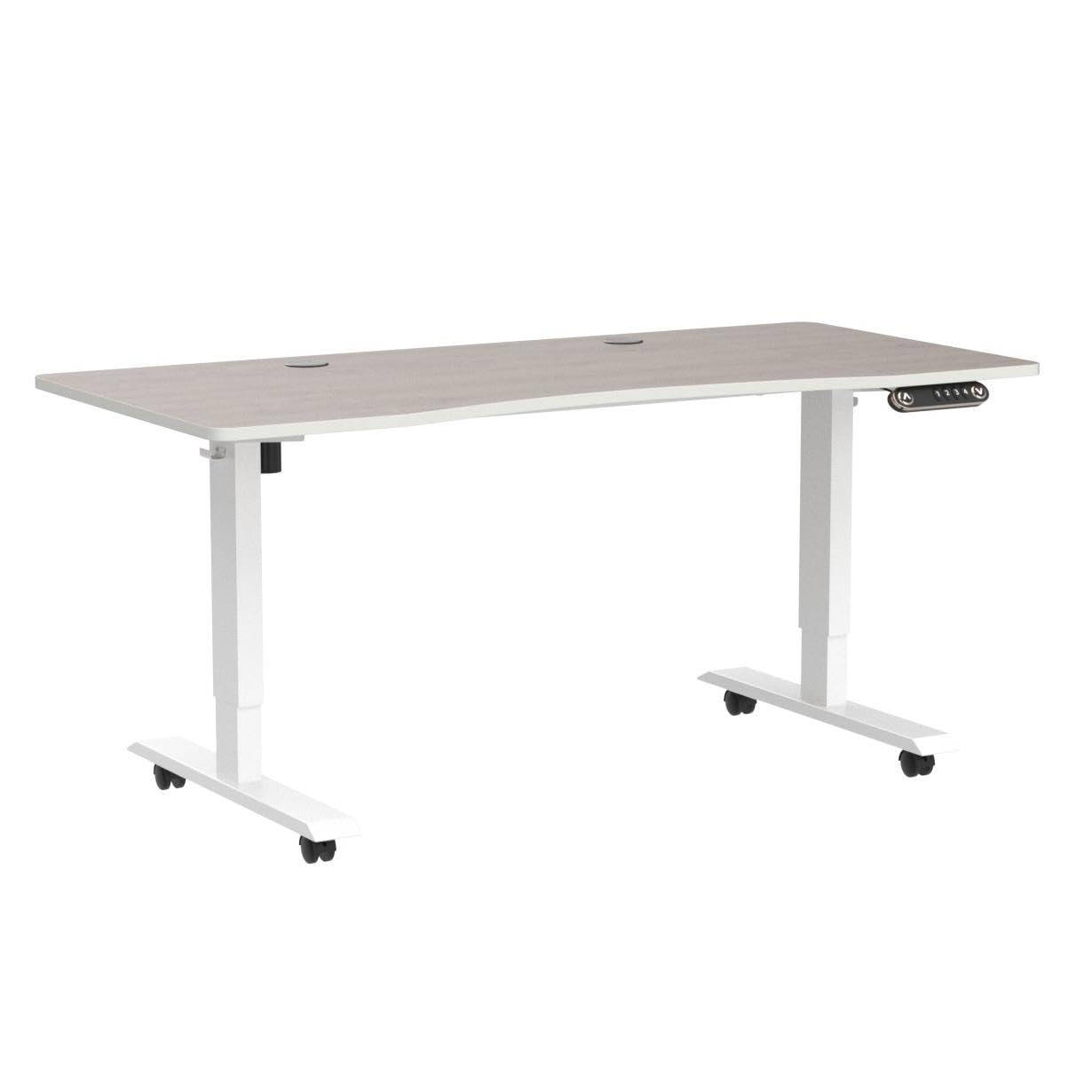 bilbil Electric Standing Desk 55 x 30 Inches, Height Adjustable Sit Stand Desk with Splice Board, Casters with Brake, White Frame/Oak and White Top