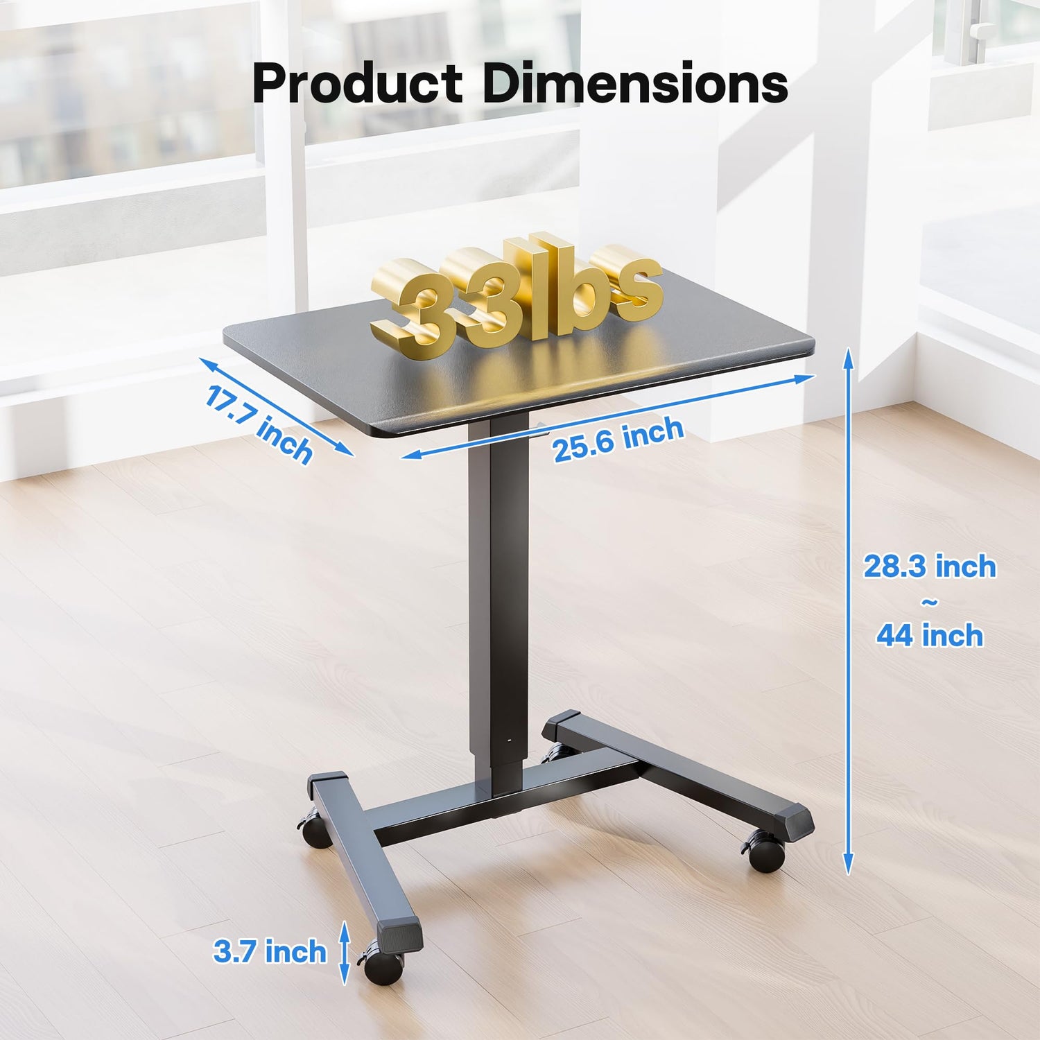 BONTEC 25.6" x 17.7" Gas Spring Mobile Stand Up Desk, Podium, Rolling Standing Desk Up to 33LBS with Wheels and Stoppers, Laptop Standing Desk Height Adjustable, Black