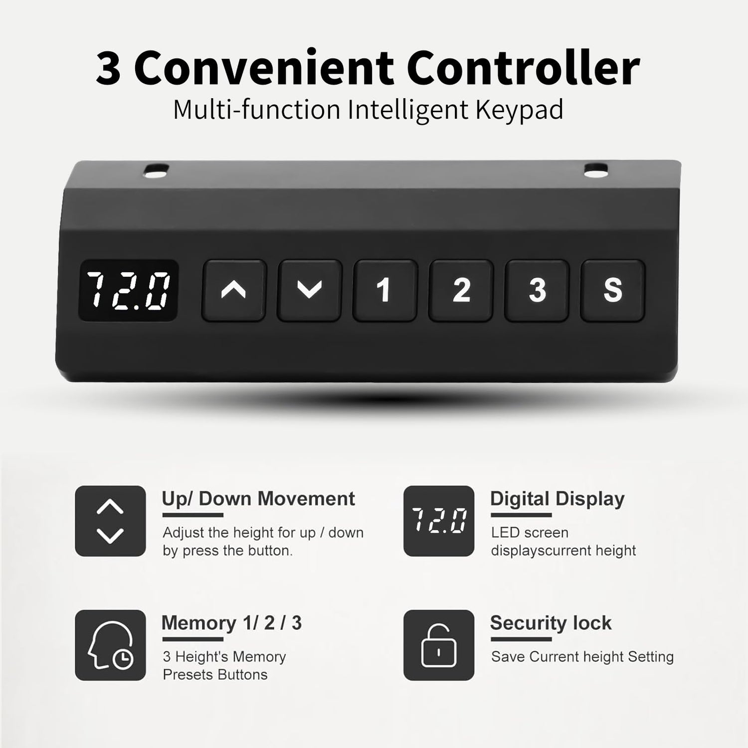 - High-Quality Machinery: This electric adjustable table legs telescopic height adjustment mechanism enables swift transitions from sitting to standing in seconds, 1''/sec speed with lower noise (under 45 dB), liberate yourself from unhealthy work habits