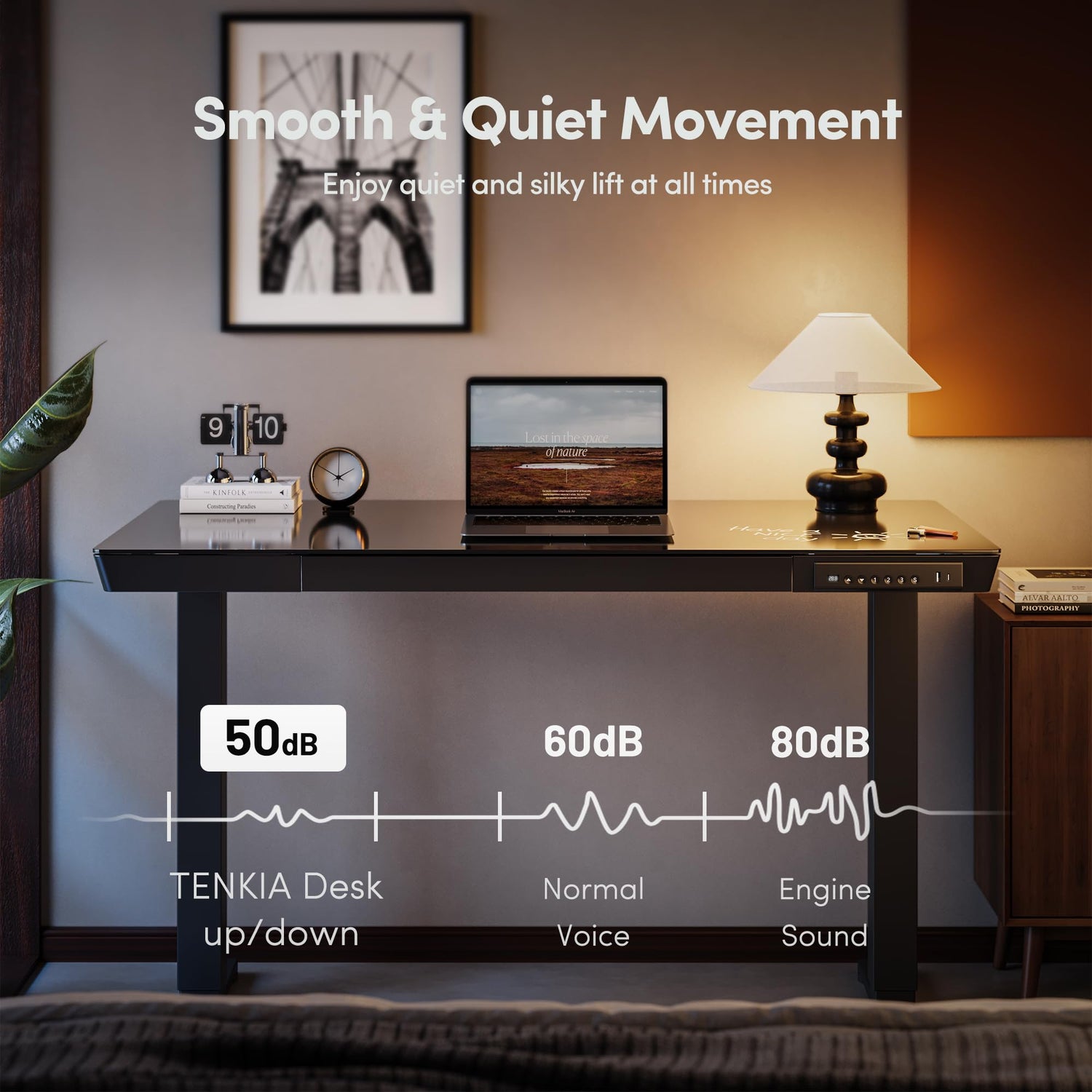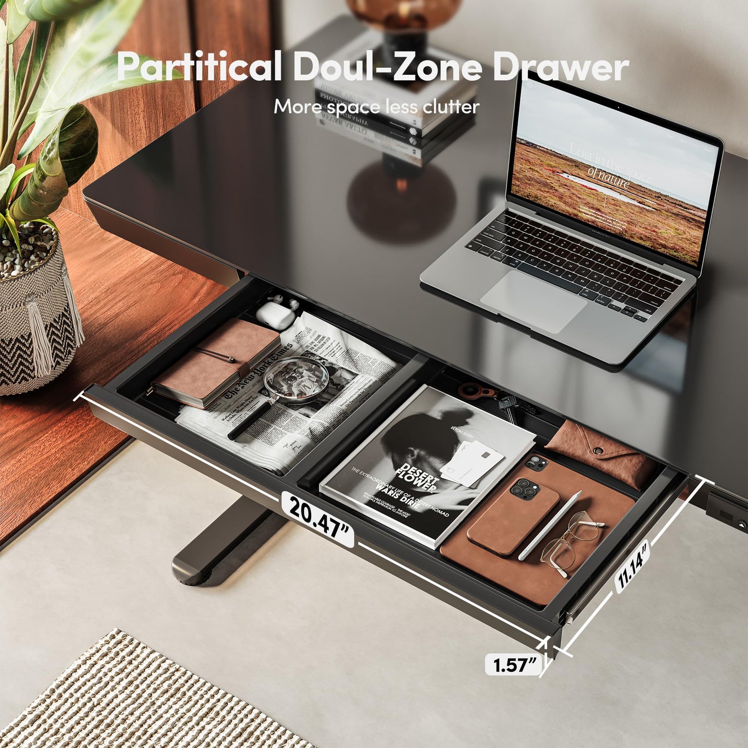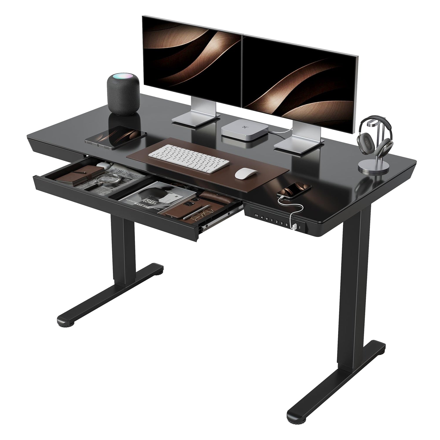 CubiCubi 48 × 24 Electric Standing Desk with Drawers, Whole-Piece Glass Adjustable Height Desk, One-Piece Quick Install Adjustable Sit Stand Desk, Black