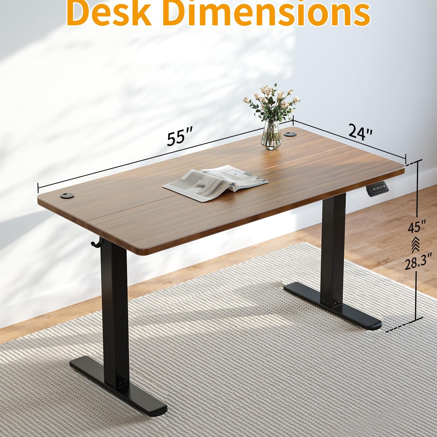 CubiCubi Electric Standing Desk, 55 x 24 Inches Height Adjustable Sit Stand Desk, Ergonomic Home Office Computer Workstation, Black Walnut