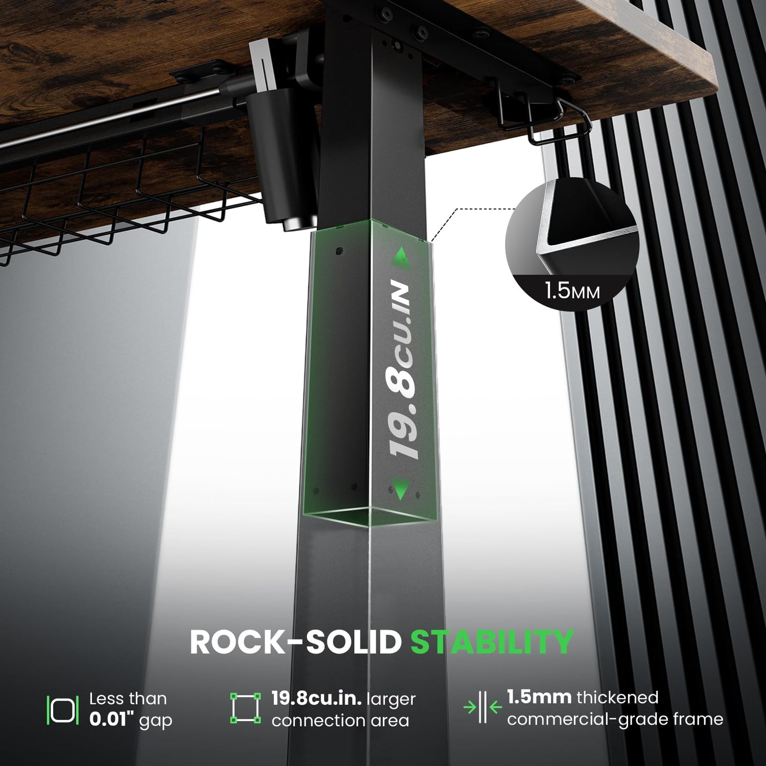 - Rock-solid Stability : Featured 19.8cu.in. larger connection area (at full height) with 1.5mm commercial-grade frame, DeskShow standing desk ensure stability and durability for long-lasting usage. Firm foundation for work at any height, eliminating any distractions from wobbling.
