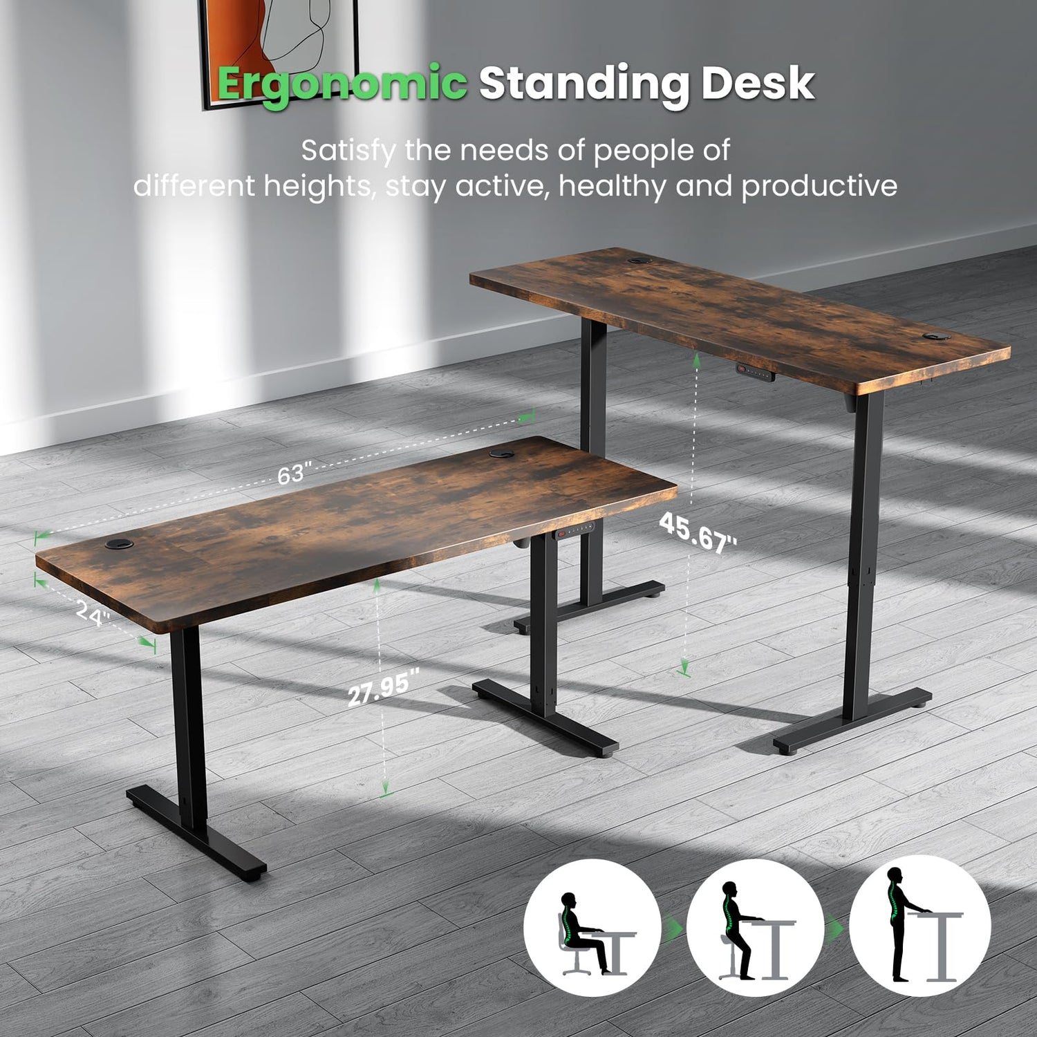 - Adjustable Height Desk : Effortlessly transition from sitting to standing with just the touch of a button (27.95" to 45.67") to add comfort throughout the day. DeskShow stand up desk is a great tool on your path toward stay active, healthy and productive.
