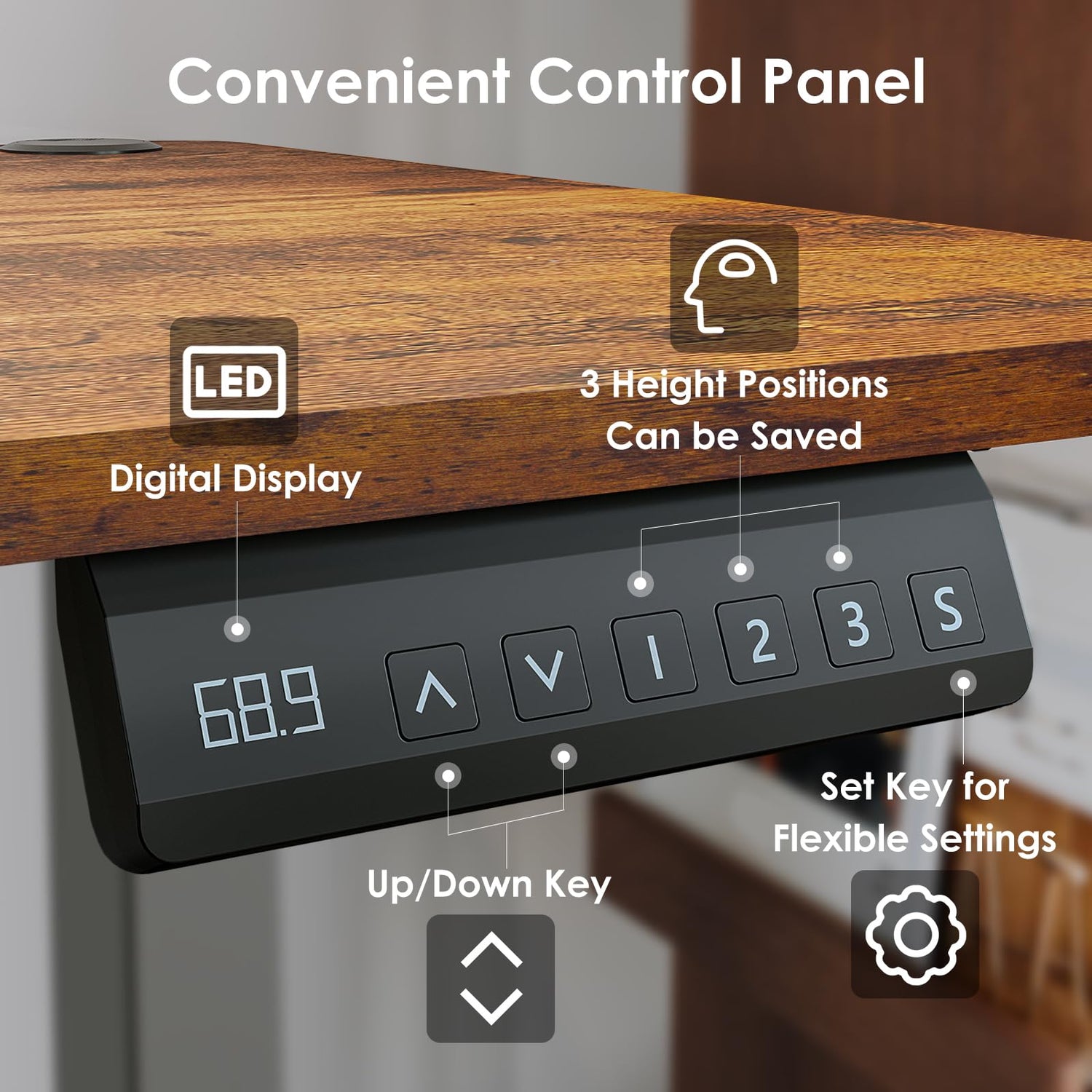 - User-Friendly Control Panel: Enjoy easy operation with an intuitive LCD display and smart controls. Save 1-3 preferred heights with one-touch presets. Includes child lock, anti-collision sensors and quiet motor (<50 dB), for added safety in homes with kids or pets