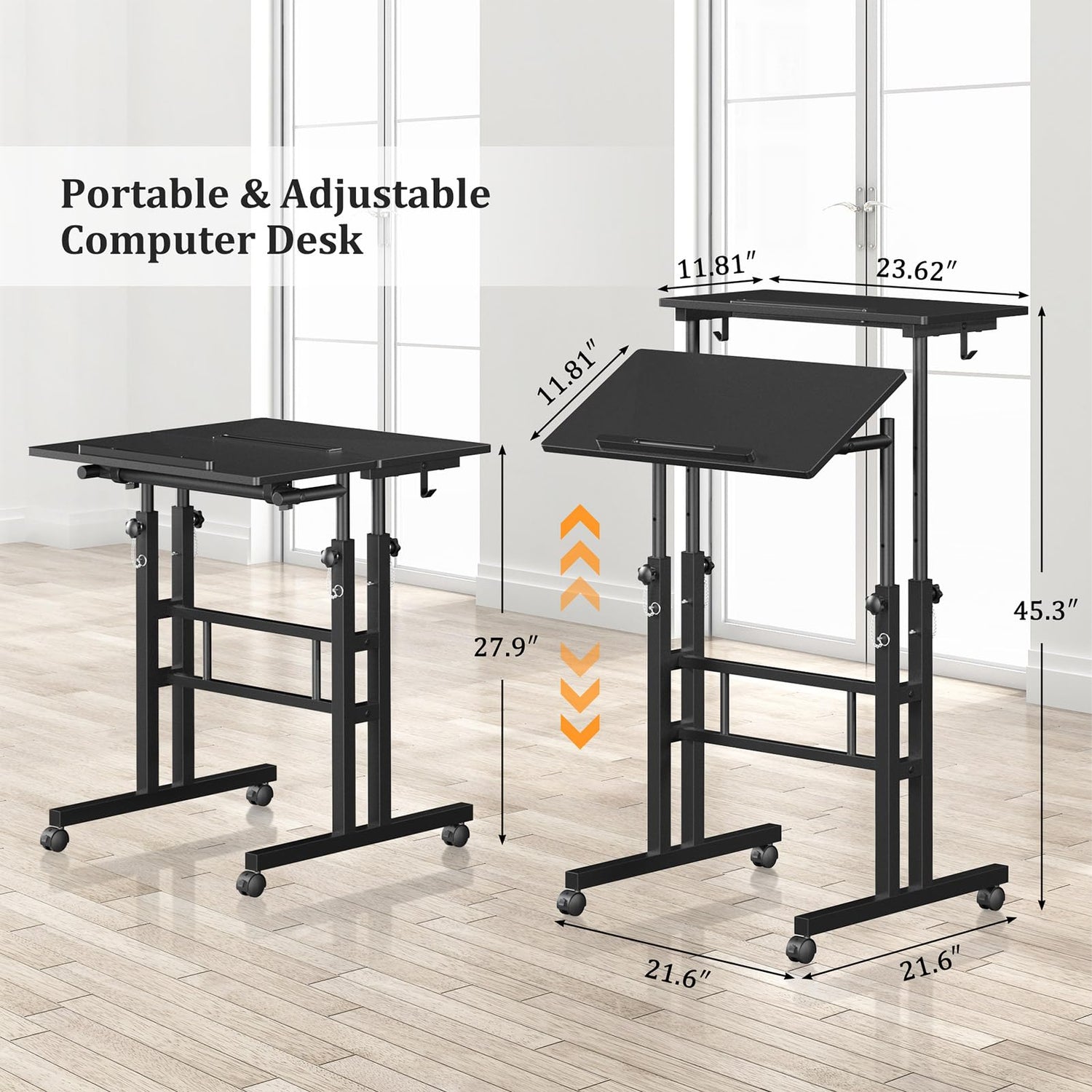 Enayplon Small Standing Desk with Wheels, Mobile Stand Up Desk, Portable Standing Table on Wheels for Walking Pad, Rolling Computer Desk Adjustable Height, Tall Table