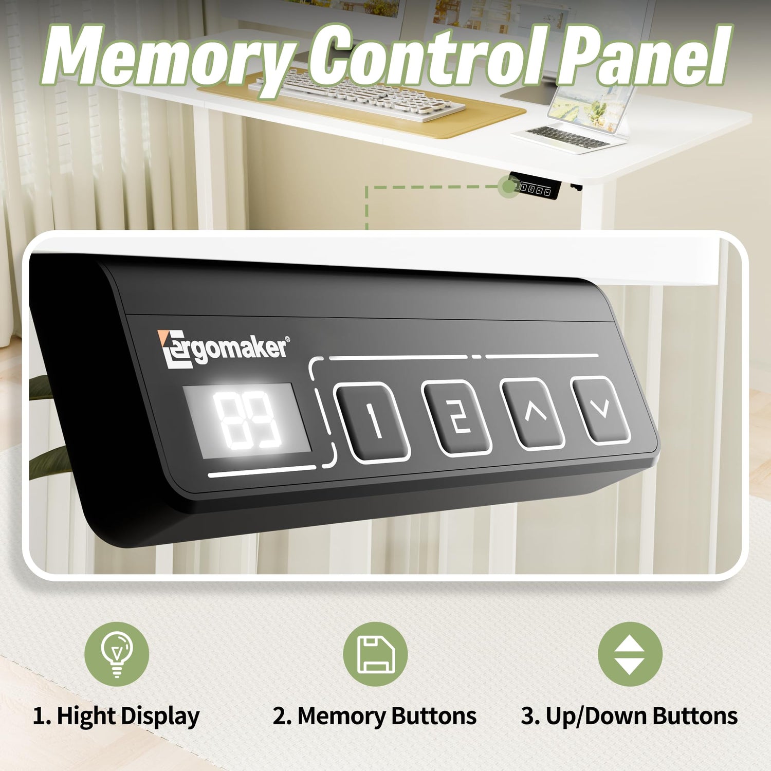 ERGOMAKER 55" Electric Standing Desk, Adjustable Height, Sit Stand Up Desk for Home Office & Computer Workstations, Memory Controller, White