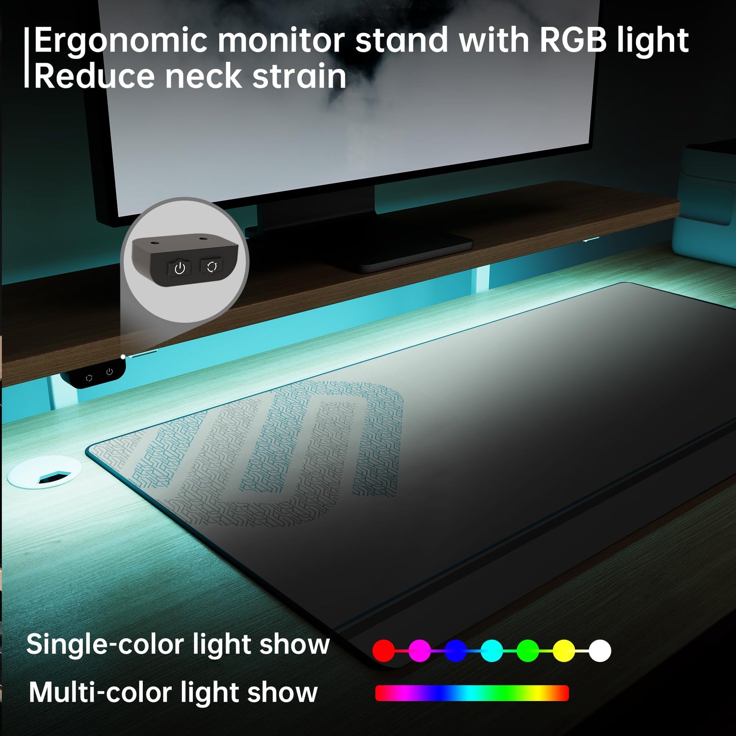 • 【Accessories Upgrades 】The adjustable height computer desk included cup holder,headphone hook,socket holder,RGB lights,large mouse pad,dual cable holes.
