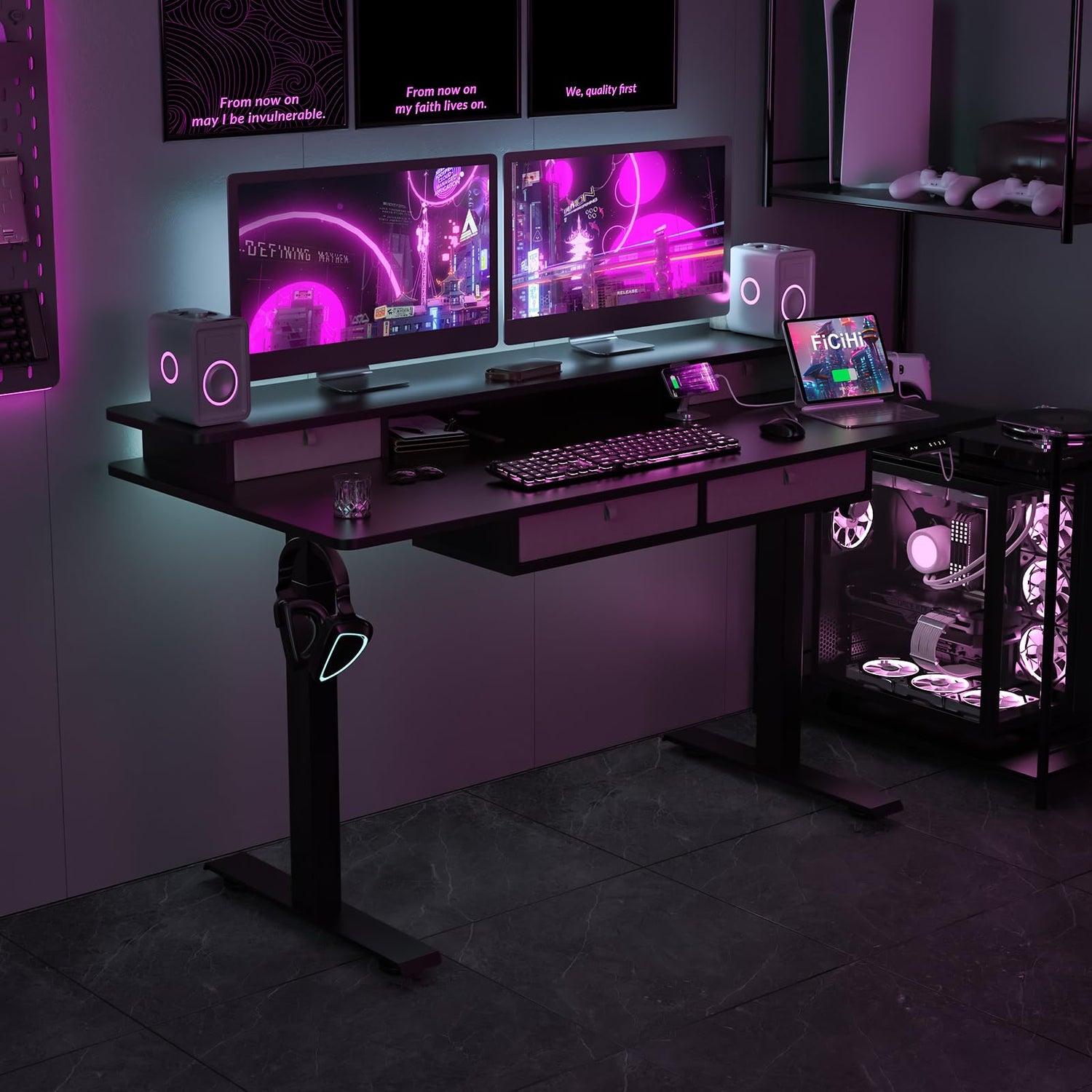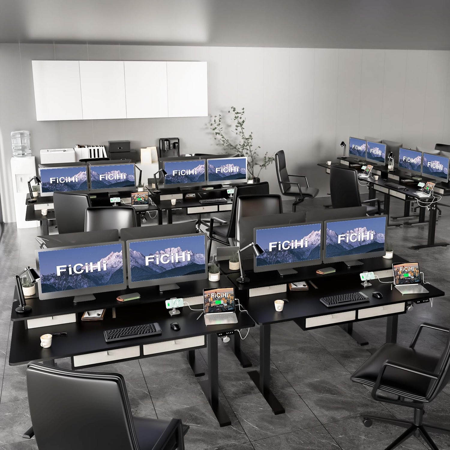 FICIHI Electric Standing Desk USB A/C Charging Port, Electric Height Adjustable Desk, 63 x 30 inches Desk with 4 Drawers,Larger Table Legs,Ergonomic Workstation Suitable for Home Gaming Office