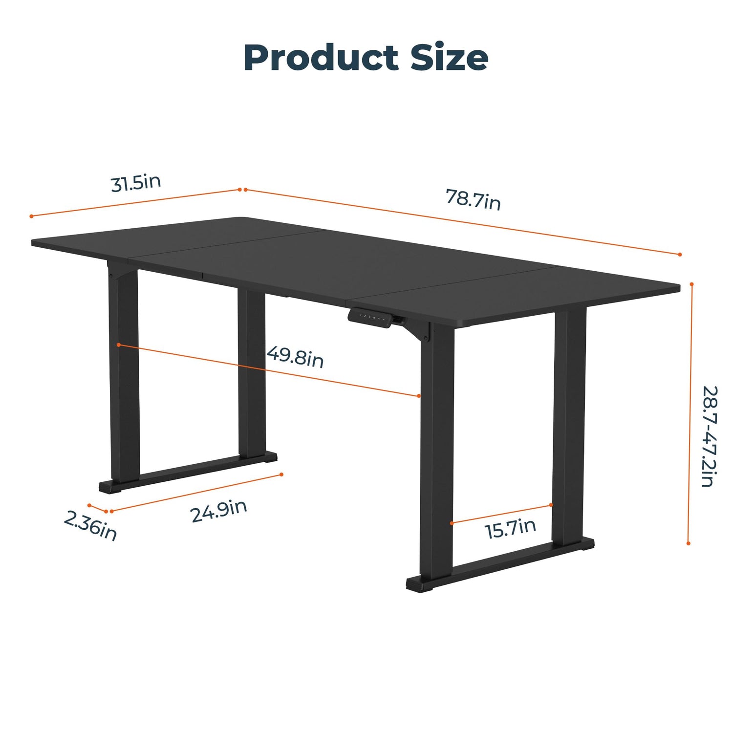 FitStand 4 Legs Standing Desk, Large 79x31 Inches Electric Adjustable Height Desk with Splice Board, Stand Up Desk Home Office Computer Workstation, Black