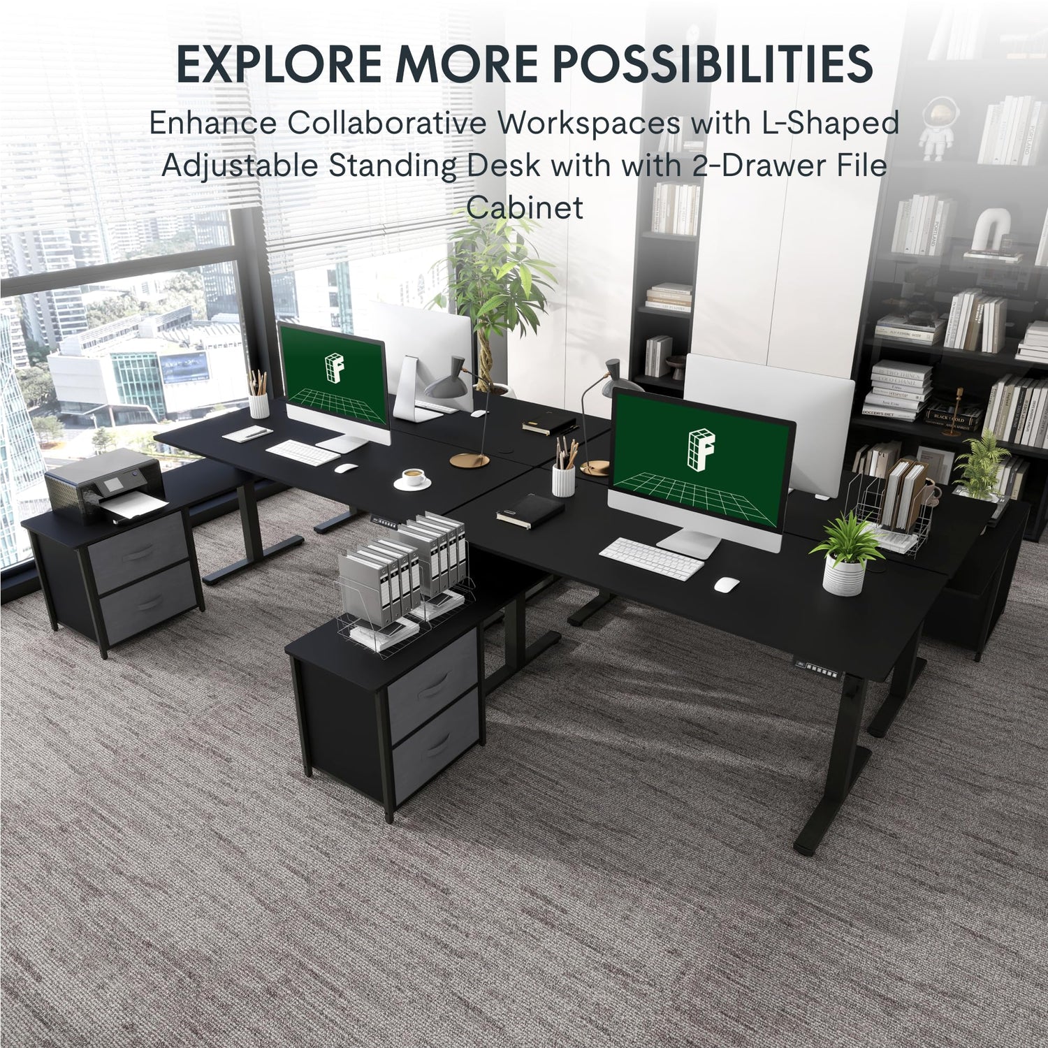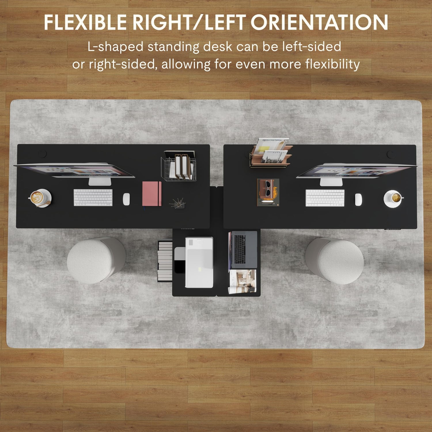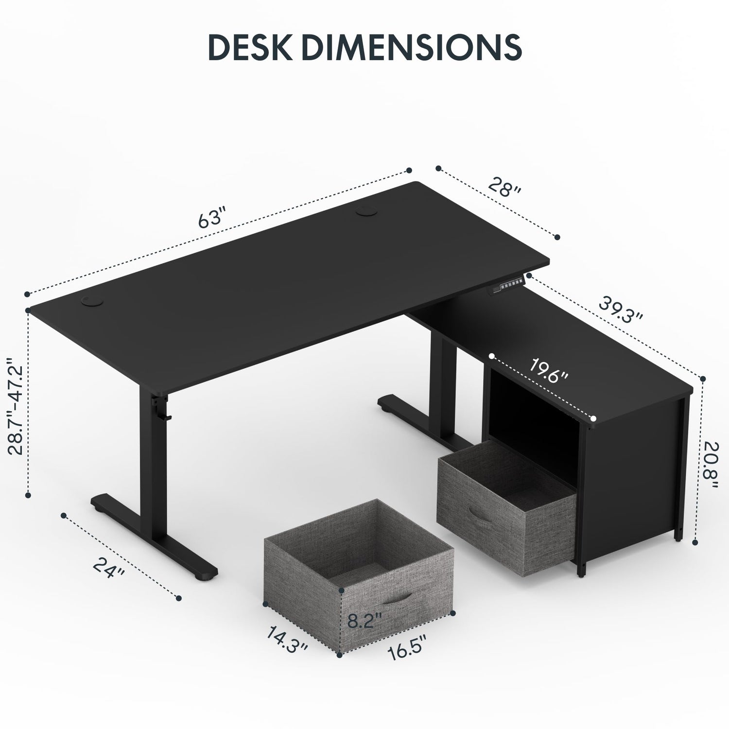 - LARGE & SPACIOUS WORKSPACE: Expansive 63'' x 27.6'' desktop offers more ample workspace. This L shaped standing desk provides spacious workstation for writing, studying, gaming and other home office activities, you can tackle tasks with ease and efficiency. And the L-shaped design maximizes the use of space in the corners and expands storage space.