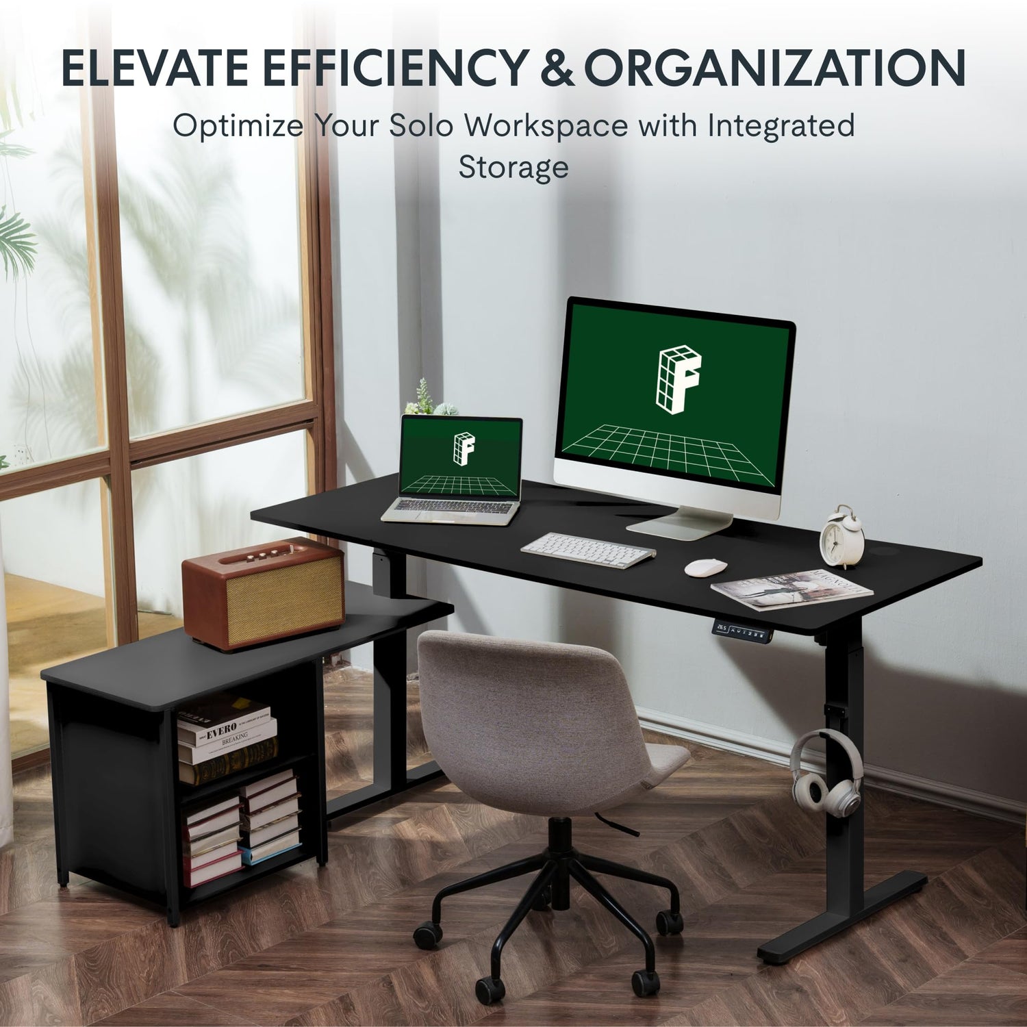 - DURABLE & STEADY CONSTRUCTION: The sturdy steel frame is stable for up to 154 lbs capacity. Our L shaped computer desk ensures stability and durability, ensuring unparalleled stability and security. Rigorously tested over 100,000 times, this desk maintains its firm foundation, even at full height, providing you with a reliable workspace built to last.
