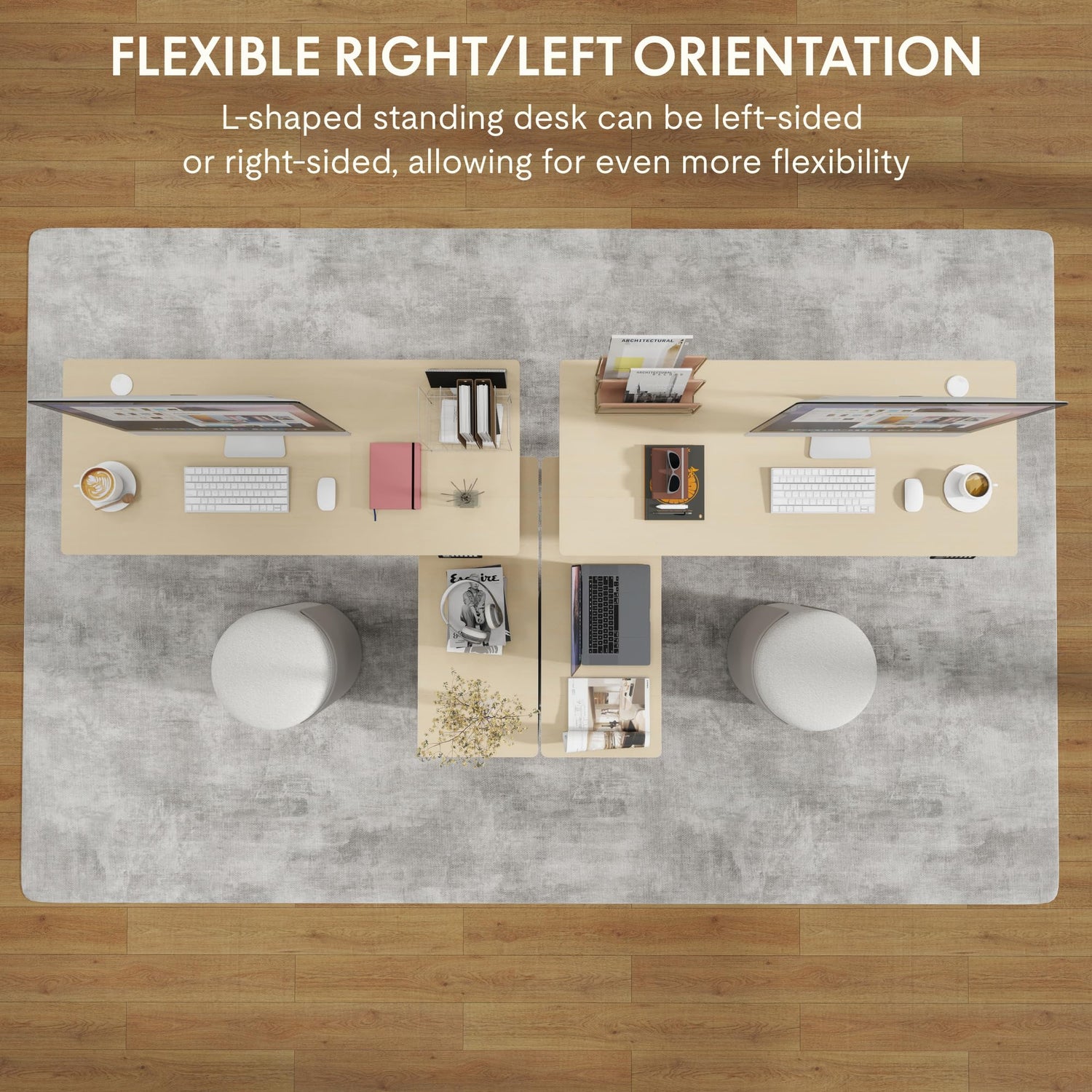 - LARGE & SPACIOUS WORKSPACE: Expansive 63'' x 27.6'' desktop offers more ample workspace. This L shaped standing desk provides spacious workstation for writing, studying, gaming and other home office activities, you can tackle tasks with ease and efficiency. And the L-shaped design maximizes the use of space in the corners and expands storage space.