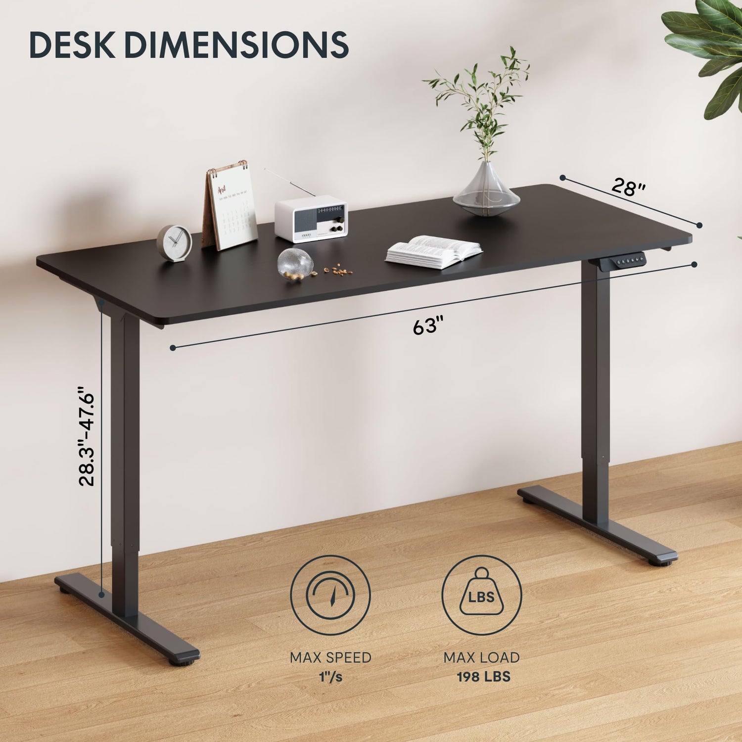 FLEXISPOT Electric Standing Desk 63 x 28 Inch Adjustable Height Desk Home Office Computer Workstation Sit Stand Desk, Black Top + Black Frame