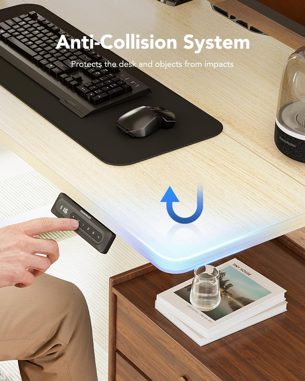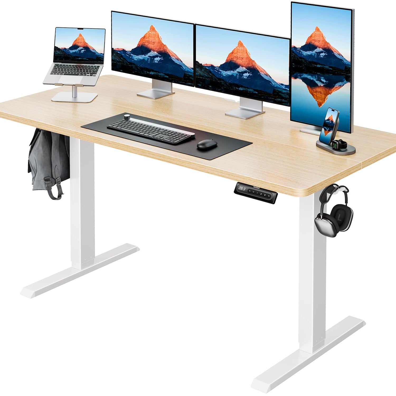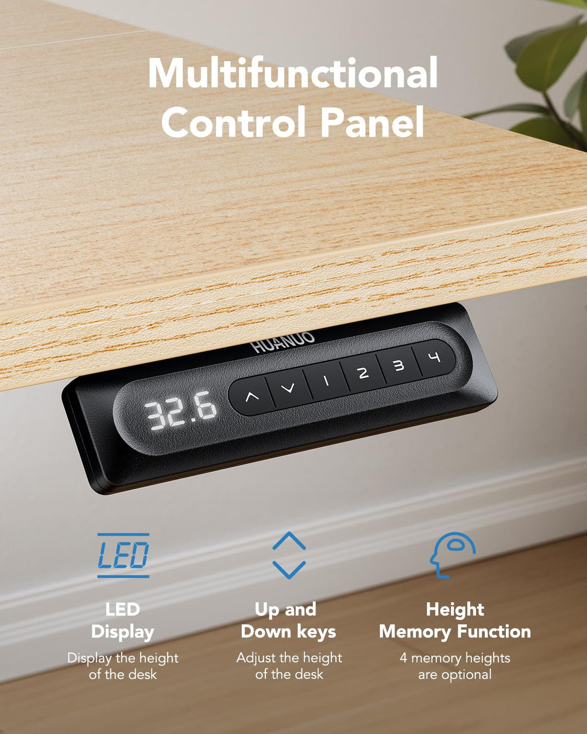 HUANUO 55" x 24" Electric Standing Desk Adjustable Height, 4 Memory Height Settings, Headphone Hook, Cable Manager, Sit Stand Up Desk for Home Office & Computer Workstation, Natural