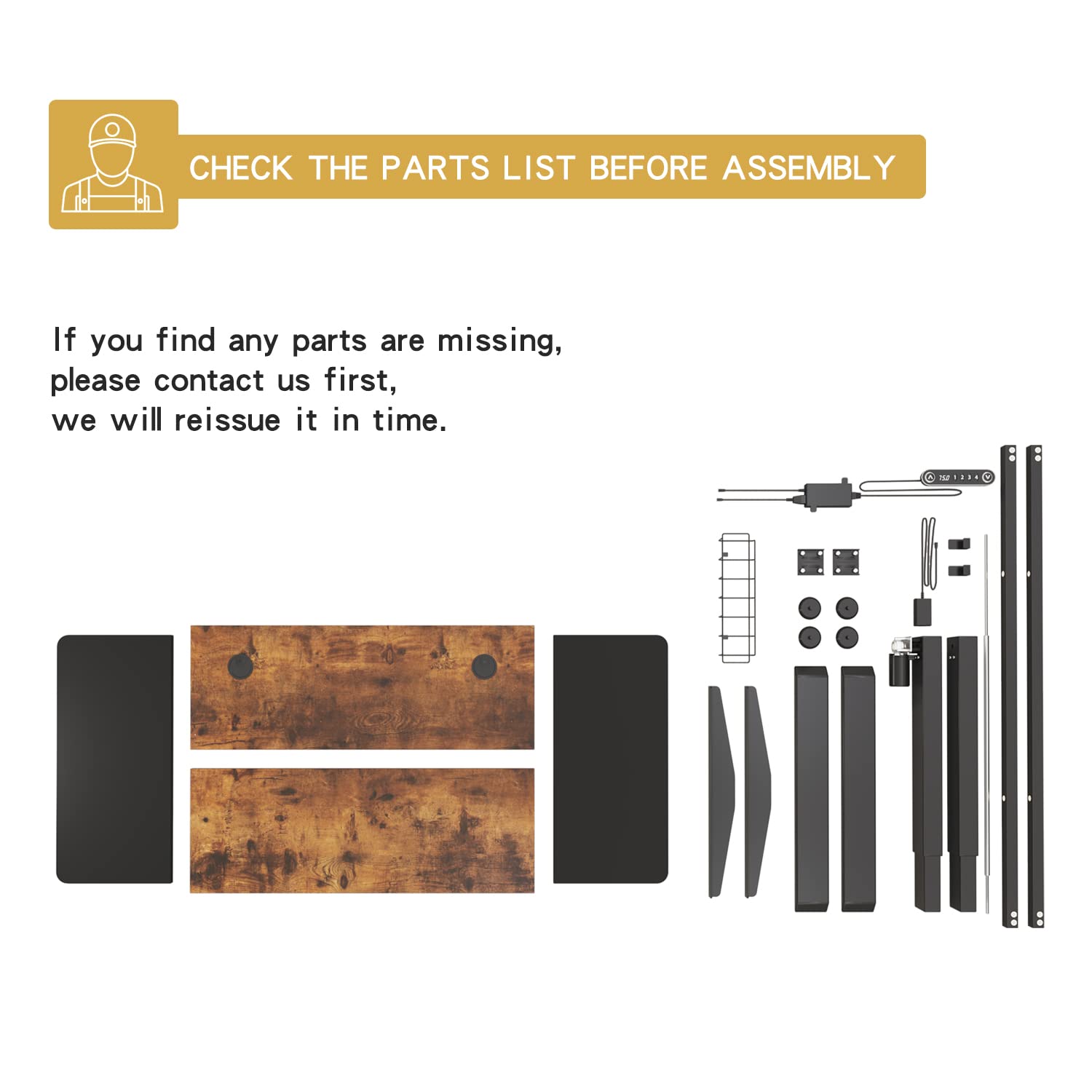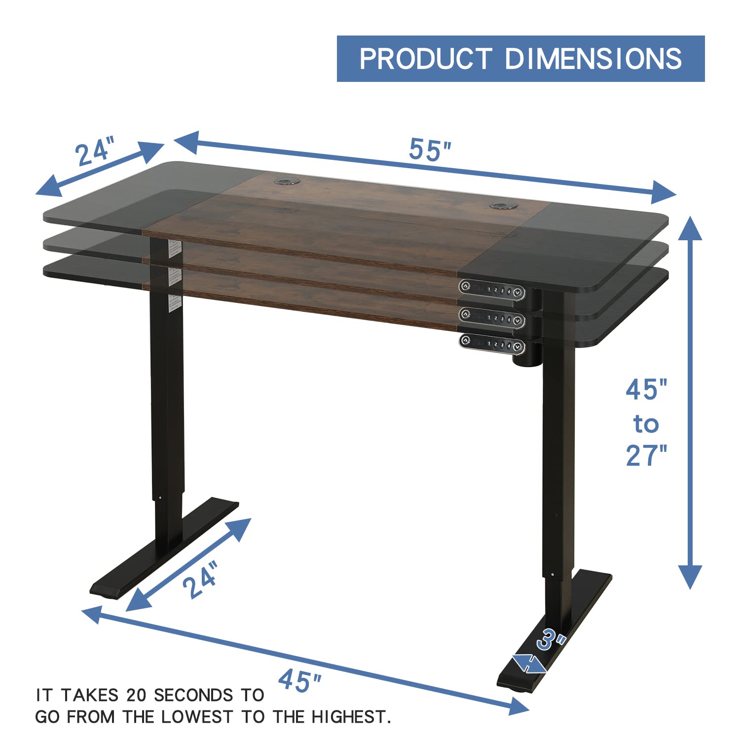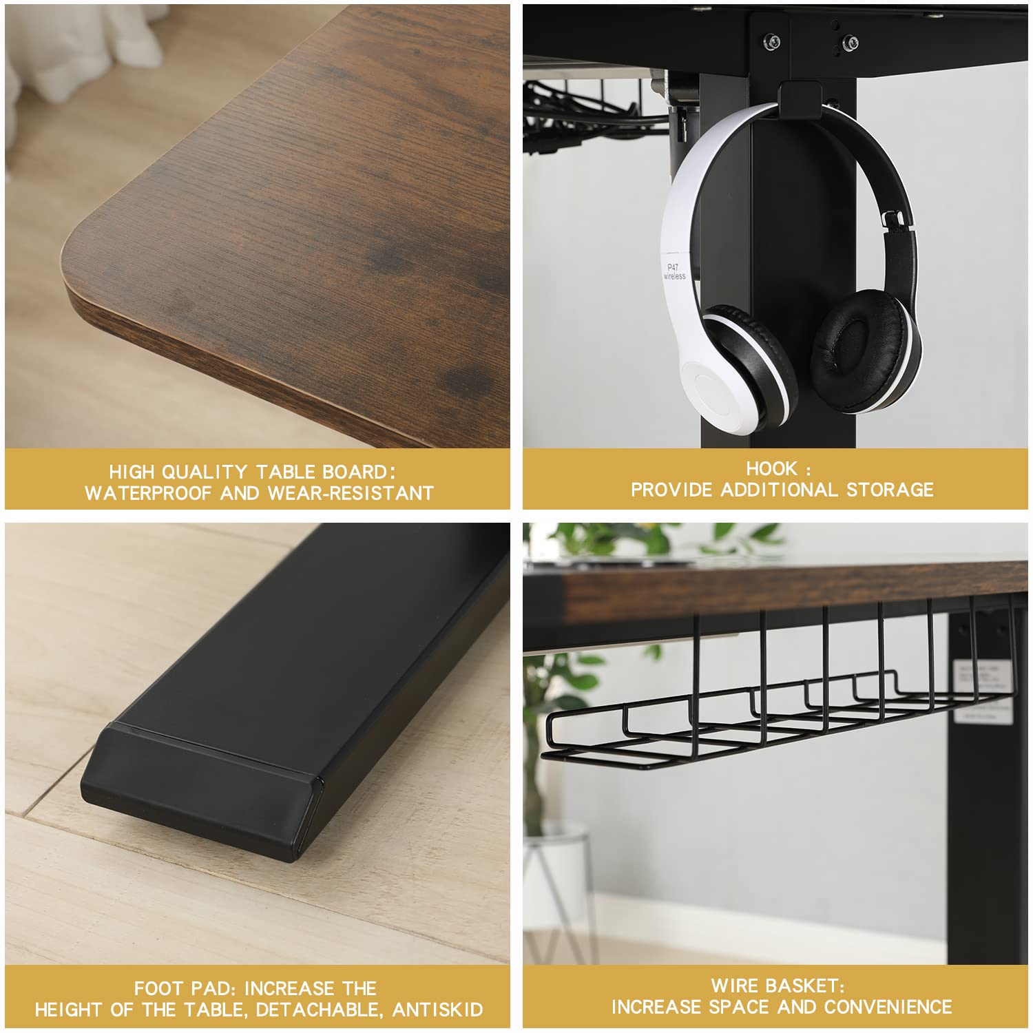 Jceet Adjustable Height Electric Standing Desk, 55 x 24 Inch Sit Stand Computer Desk with Lockable Casters, Stand Up Desk Table for Home Office, Black Frame/Rustic Brown + Black Top