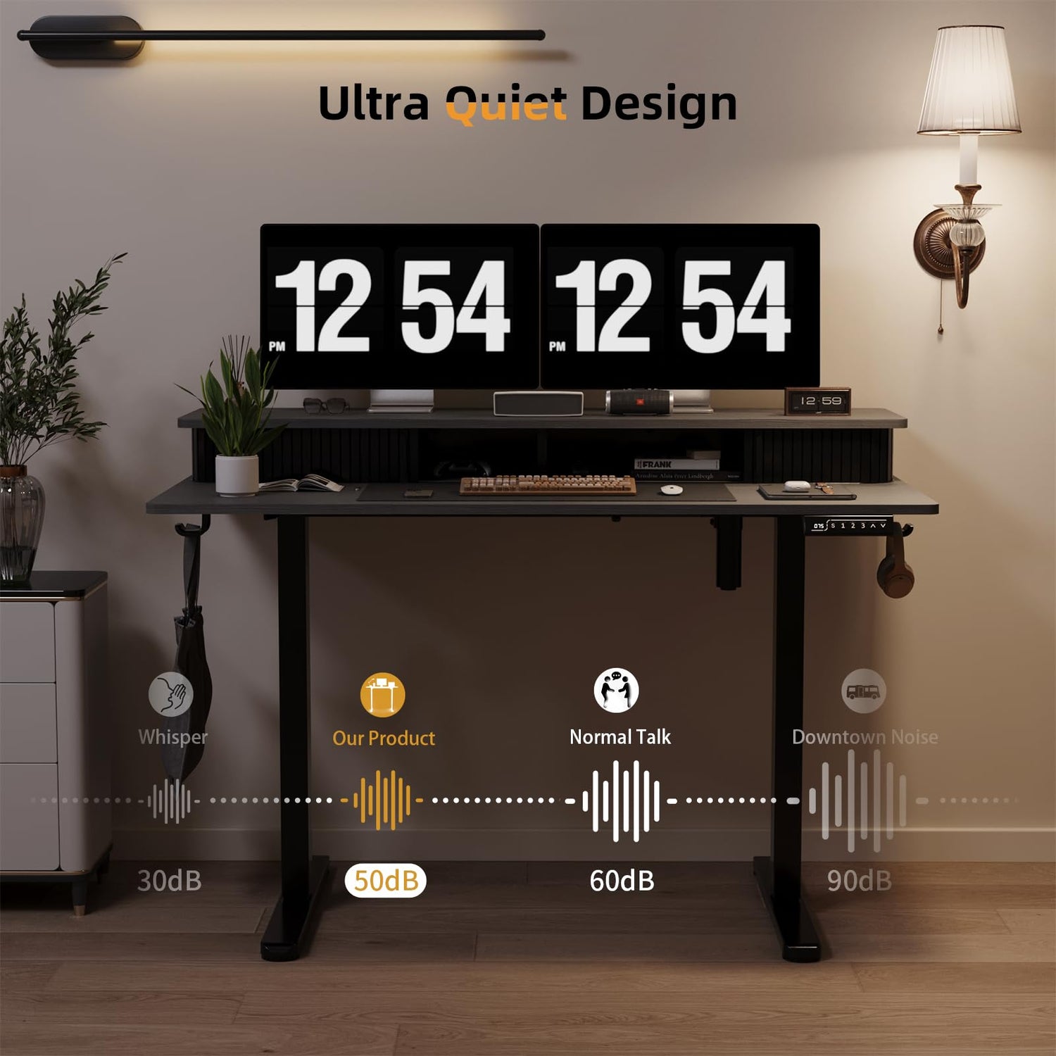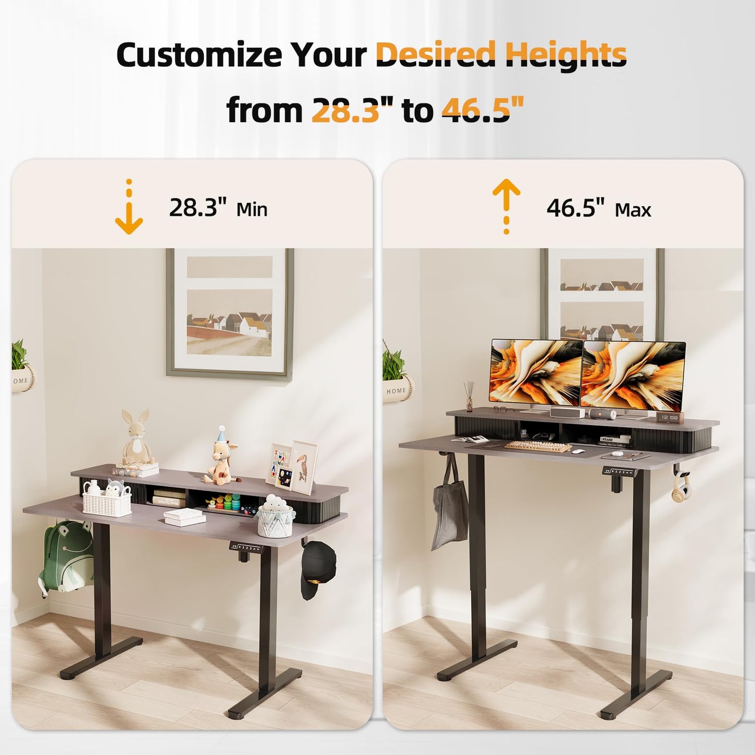 • Smooth Height Adjustment: The adjustable desk has 3 preset buttons to customize your desired heights from 28.3 inches to 46.5 inches with low noise under 50 dB