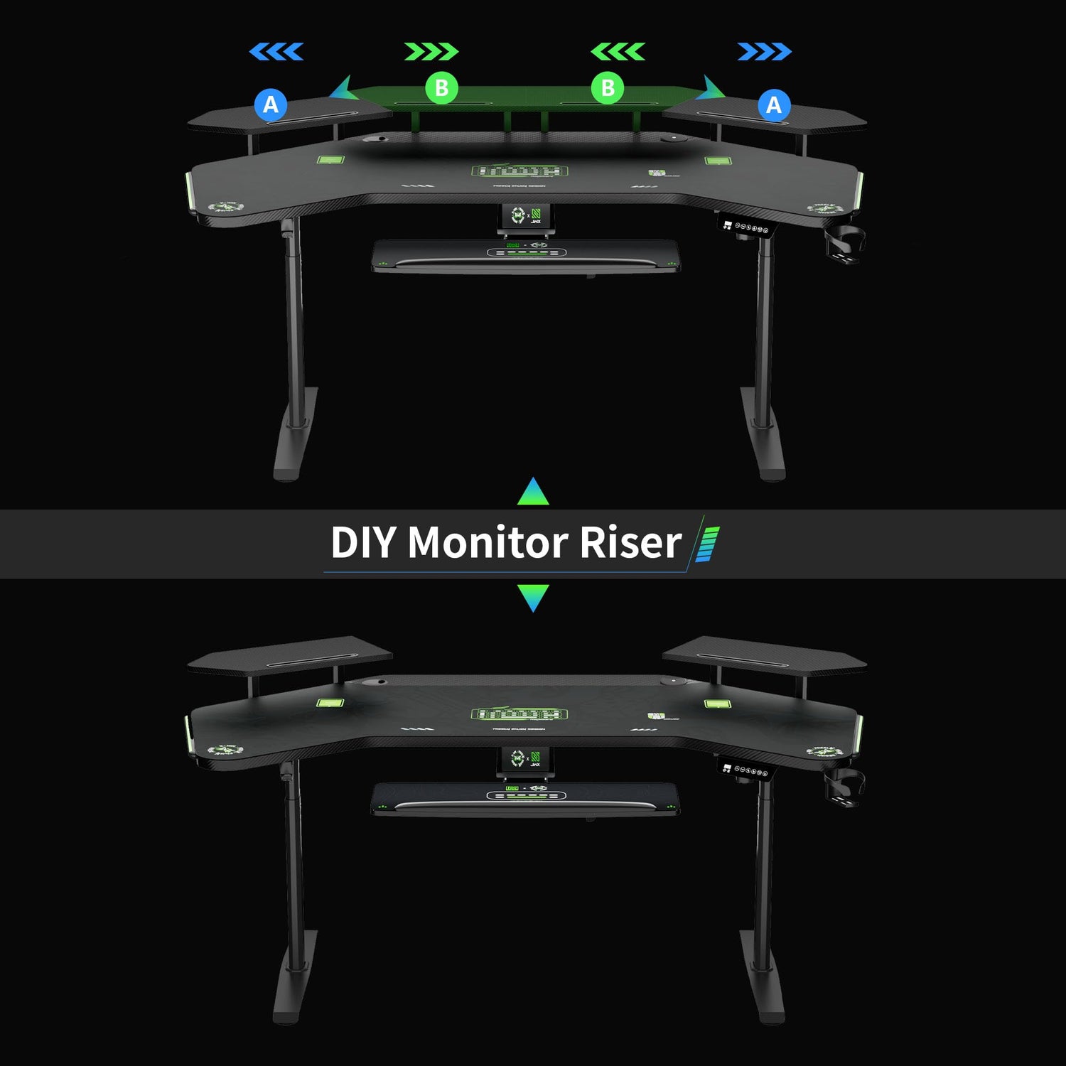 - 🎮【Next-Level Upgrade】-- Elevate your gaming setup with our latest enhancements! Firstly, we've upgraded to a dual motor system, ensuring greater weight capacity and smoother adjustments for seamless gaming sessions. Secondly, with one-click assembly and pre-installed desk legs, installation is quicker and easier than ever. Say hello to hassle-free setup and dive into your gaming adventure without delay!