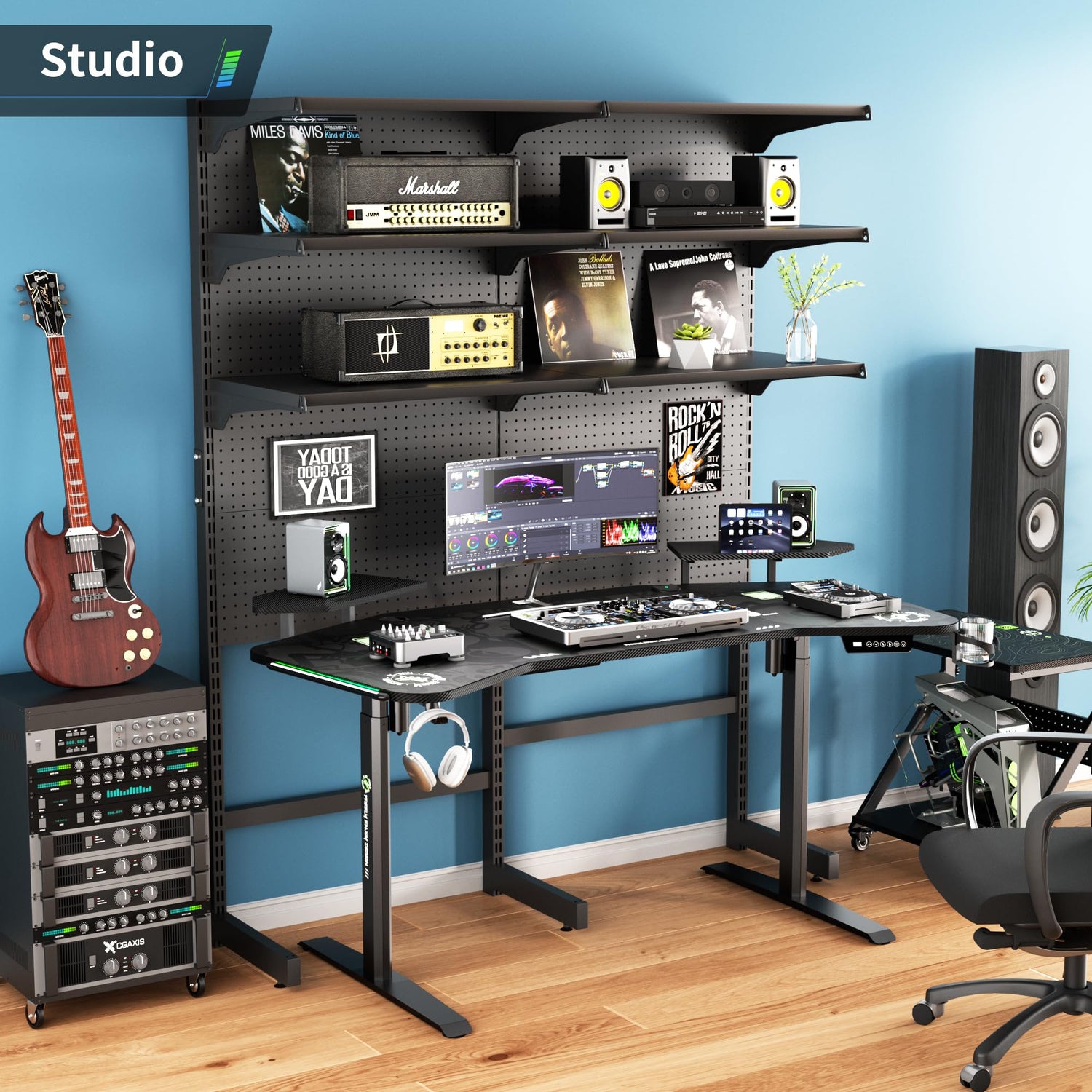 - 🎮【Immersive Lighting Control System】-- Immerse yourself in the world of gaming and productivity with our Lighting Interconnection Control System. Featuring aluminum LED strip lights on both sides, this desk boasts 16 dynamic light modes, including 6 music rhythm modes that sync with your tunes. Experience the mesmerizing dance of lights in a dimly lit room, adding a touch of magic to your gaming space.