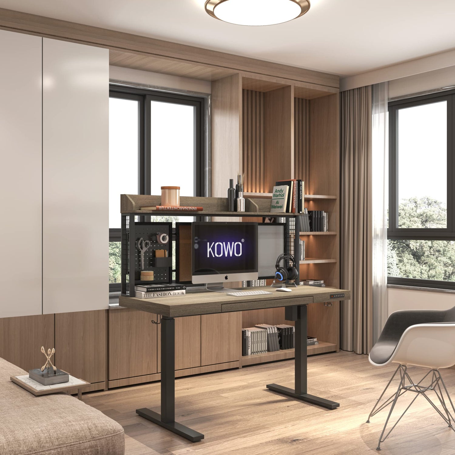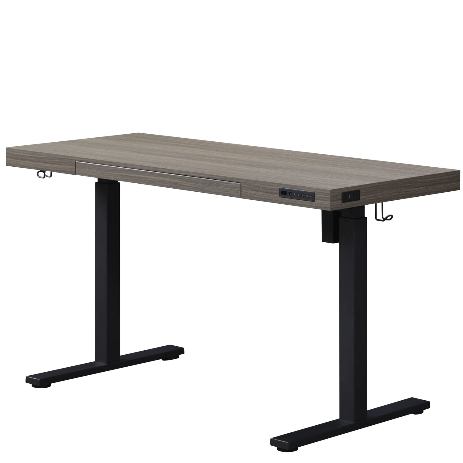 kowo Electric Height Adjustable Standing Desk with Drawer, 55" Home Office Wooden Computer Desk Ergonomic Memory Control Workstation Sit Stand Desk, Grey Oak/Black