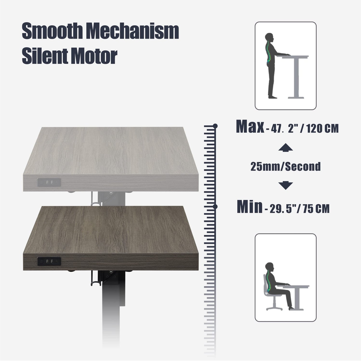 • ★ Electric Height Adjustable System: The motor lift mechanism offers smoother height adjustments, from 28" to 47.6" low noise while adjusting. This convenient designs will aid your health lifestyle every step of the way.