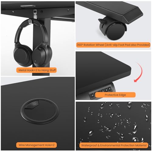 - [Well Made and Sturdy] Stand-up desks for the home office have a stable metal frame that can withstand 176 pounds of weight, sturdy, beautiful, and easy to use. The standing desk features anti-collision technology and current protection. It can accurately detect obstacles and automatically drop or rise when encountering obstacles.