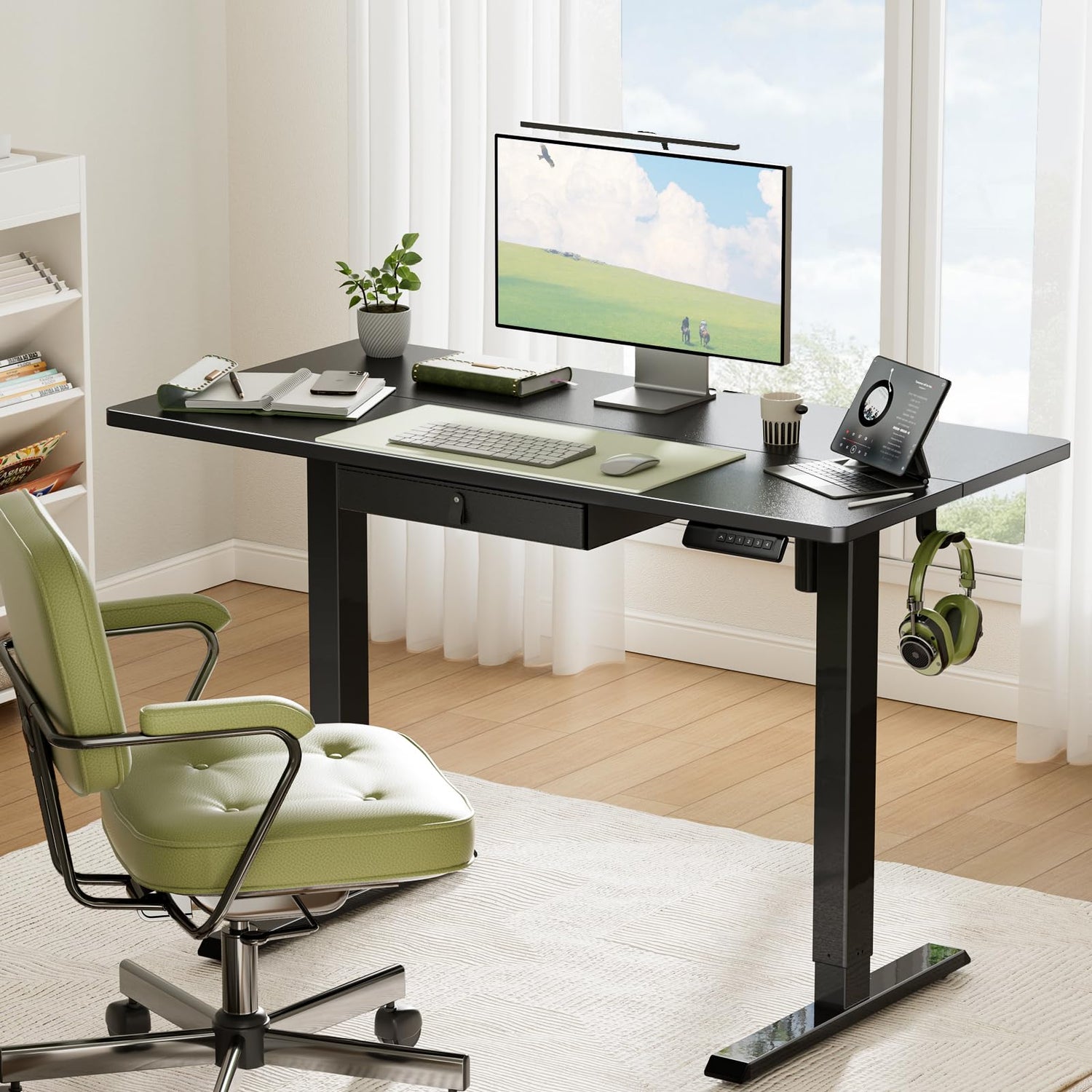 Marsail Electric Standing Desk with Drawer, 48 x 24 Electric Stand Up Desk, Ergonomic Adjustable Desk with Storage, Headphone/Bag Hooks, Computer Desk for Home & Office with Cable Management,Black