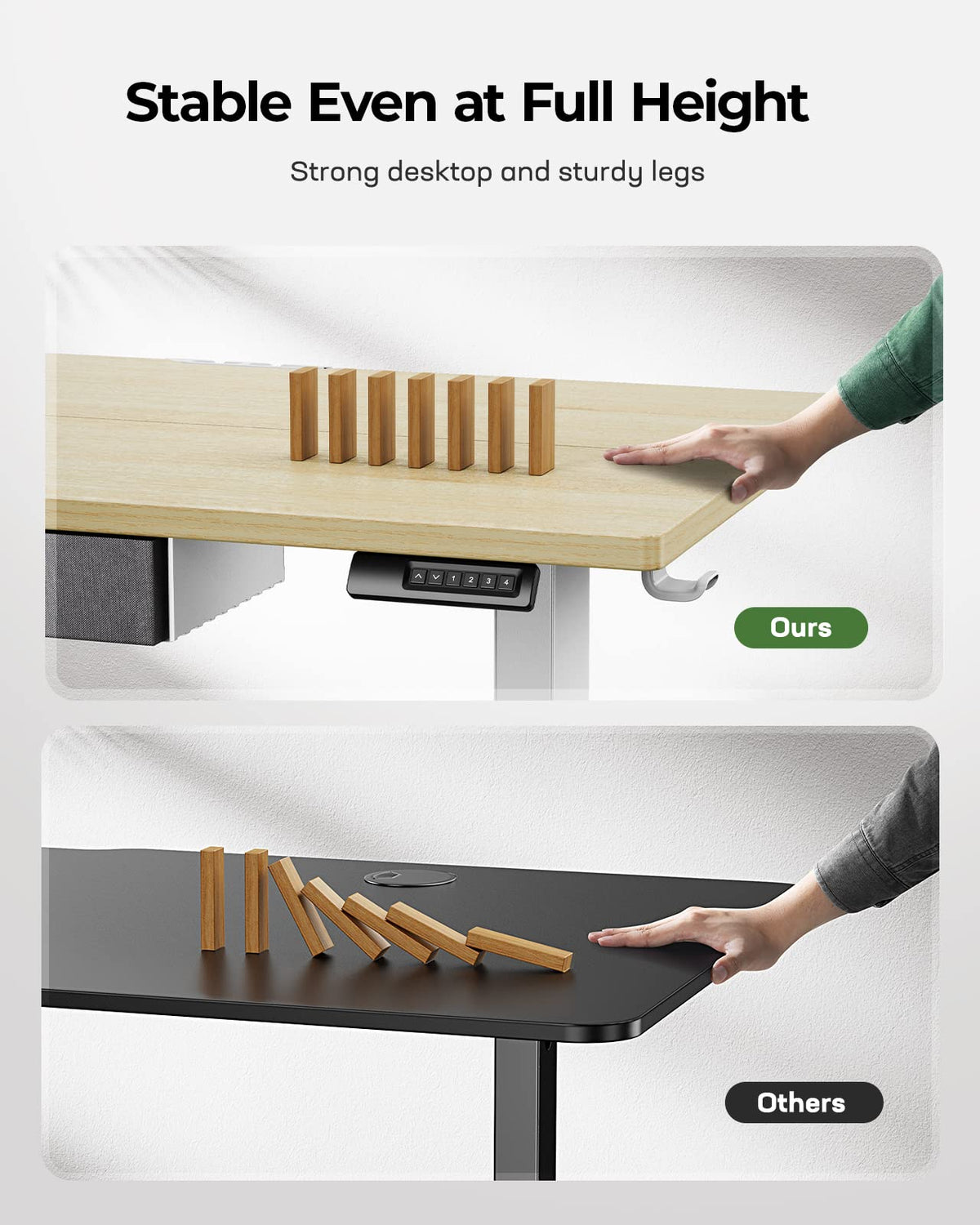 - Stable and Secure: The stable base and durable frame provide a sturdy foundation for this electric desk with storage, ensuring that it stays securely in place while you work. With its solid construction, the desktop won't wobble or shake, providing a stable work surface for all your needs