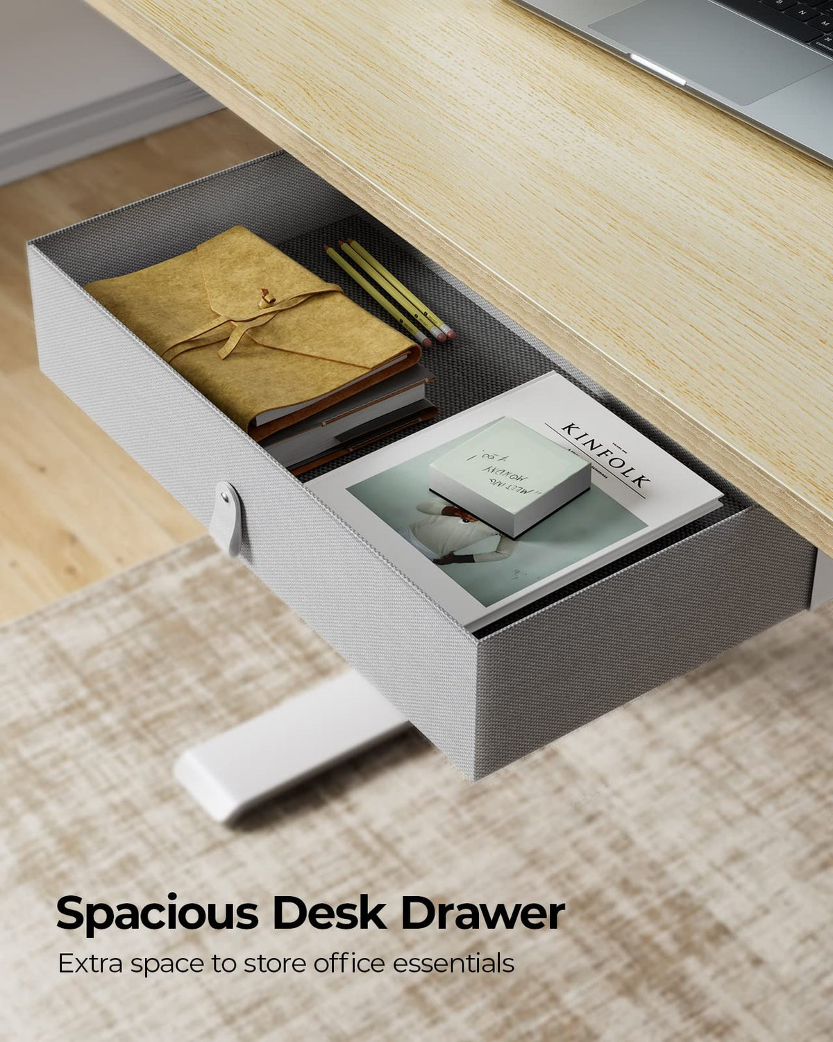 - Maximize Your Desk Space: This sleek and stylish electric desk features a convenient and spacious built-in drawer to store all of your office essentials such as paper, notebooks, and stationery, keeping your desktop clean and tidy. It is also equipped with a sturdy, durable frame that can hold up to 11 lbs