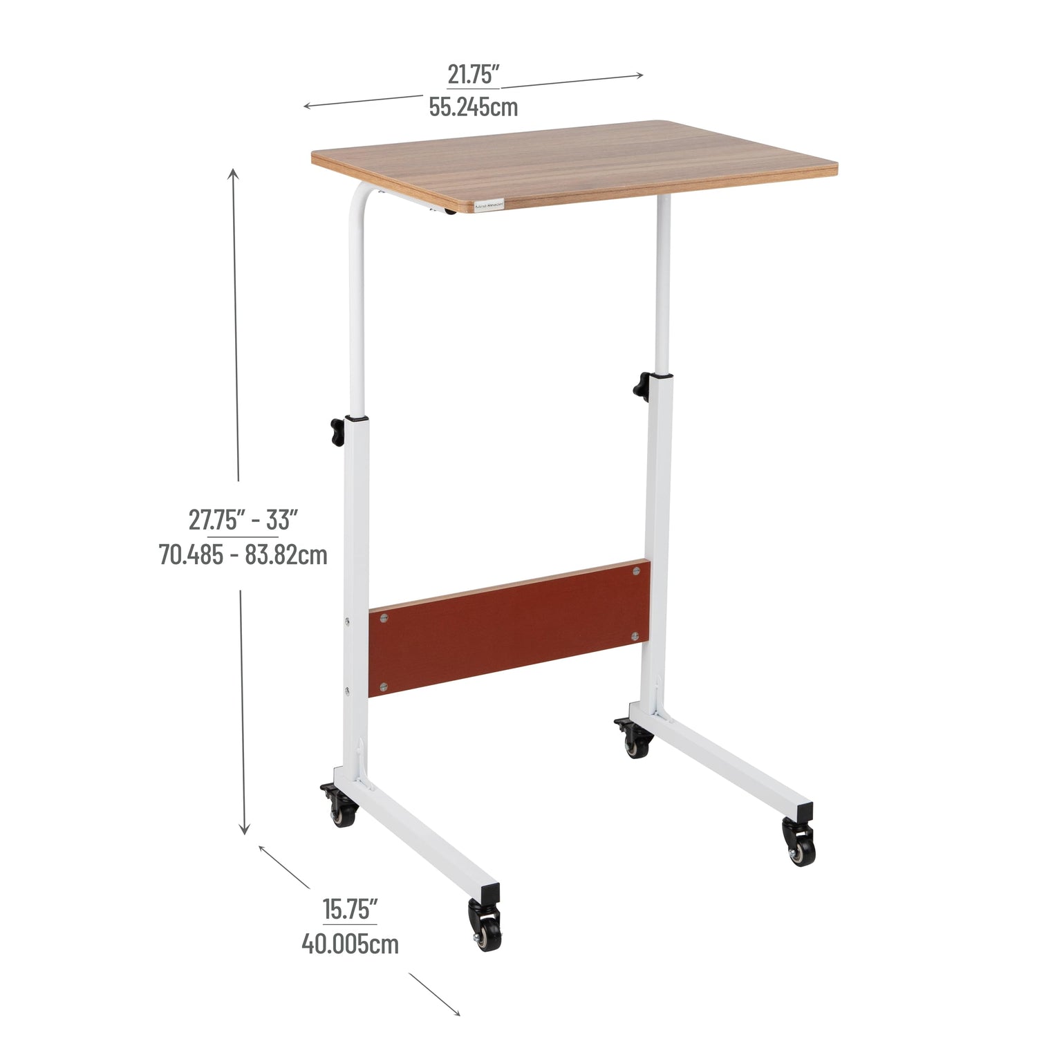 Mind Reader Woodland Collection, Mobile Sit/Stand Laptop Desk, Adjustable, Lockable Casters, Portable, 21.75" L x 15.75" W x 33" H, White