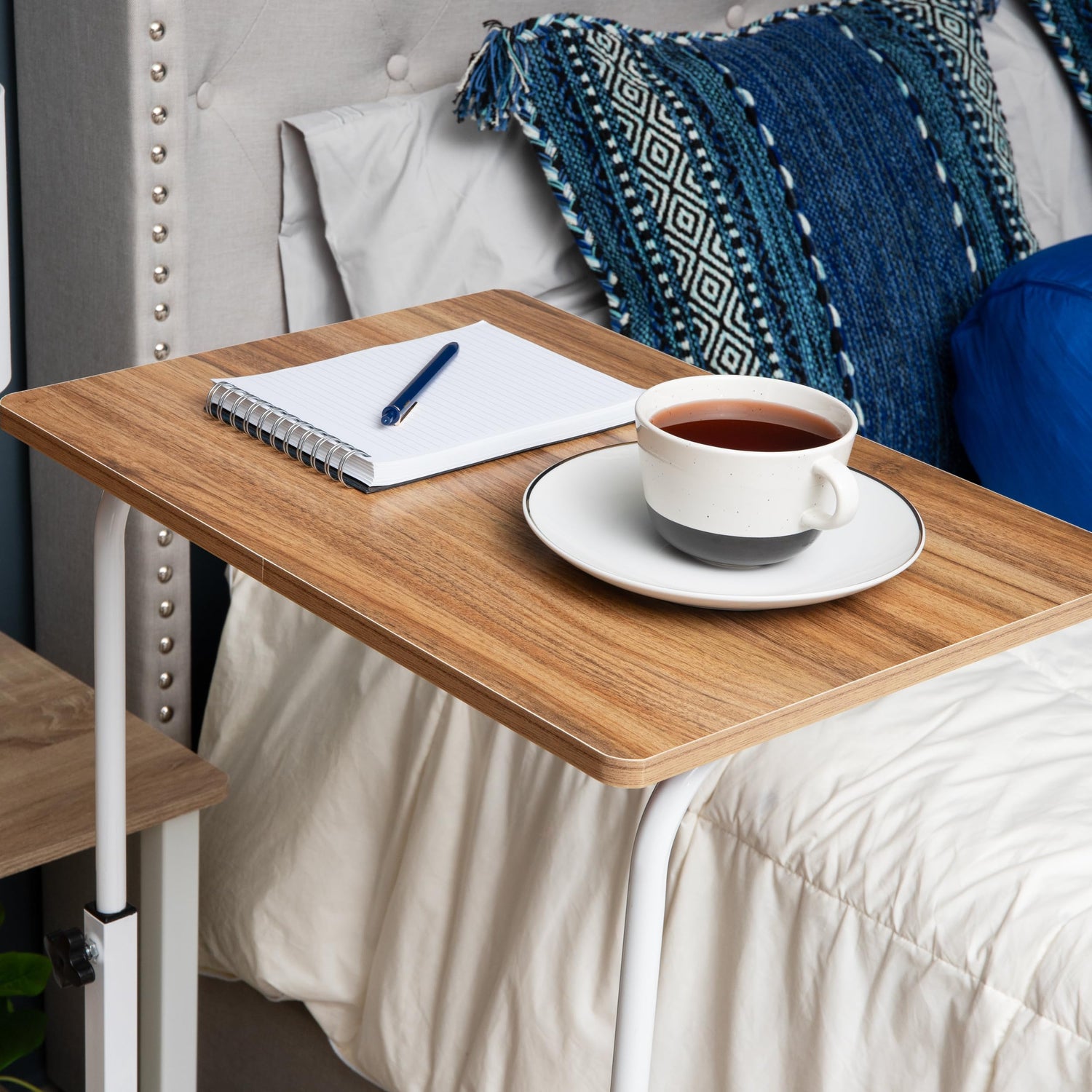 Elevate your workspace, working lunches and enhance your comfort with this over bed laptop desk. Say goodbye to awkward folding tables or hunching over low coffee tables, and welcome a sleek, convenient end table that easily pivots into a versatile surface for working, eating, or even reading. Its adjustable height levels make it perfect for use over the arm of a couch or over a bed.