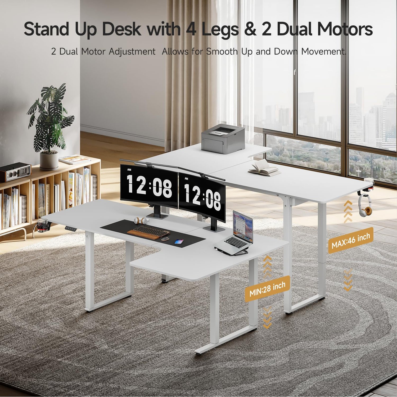ONBRILL Standing Desk, 71x43 Inches L Shaped Desk with 4 Legs, Dual Motor and Memory Controller, Electric Stand Up Desk Adjustable Height from 28-46 Inches for Computer Workstation White