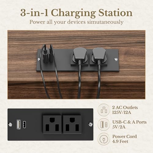 Perledesign 70" Standing Desk with Storage, Executive Electric Height Adjustable Stand Up Desk with AC/USB, Privacy Panel, Large One-Piece Destop, Fluted Computer Desk, Black Walnut