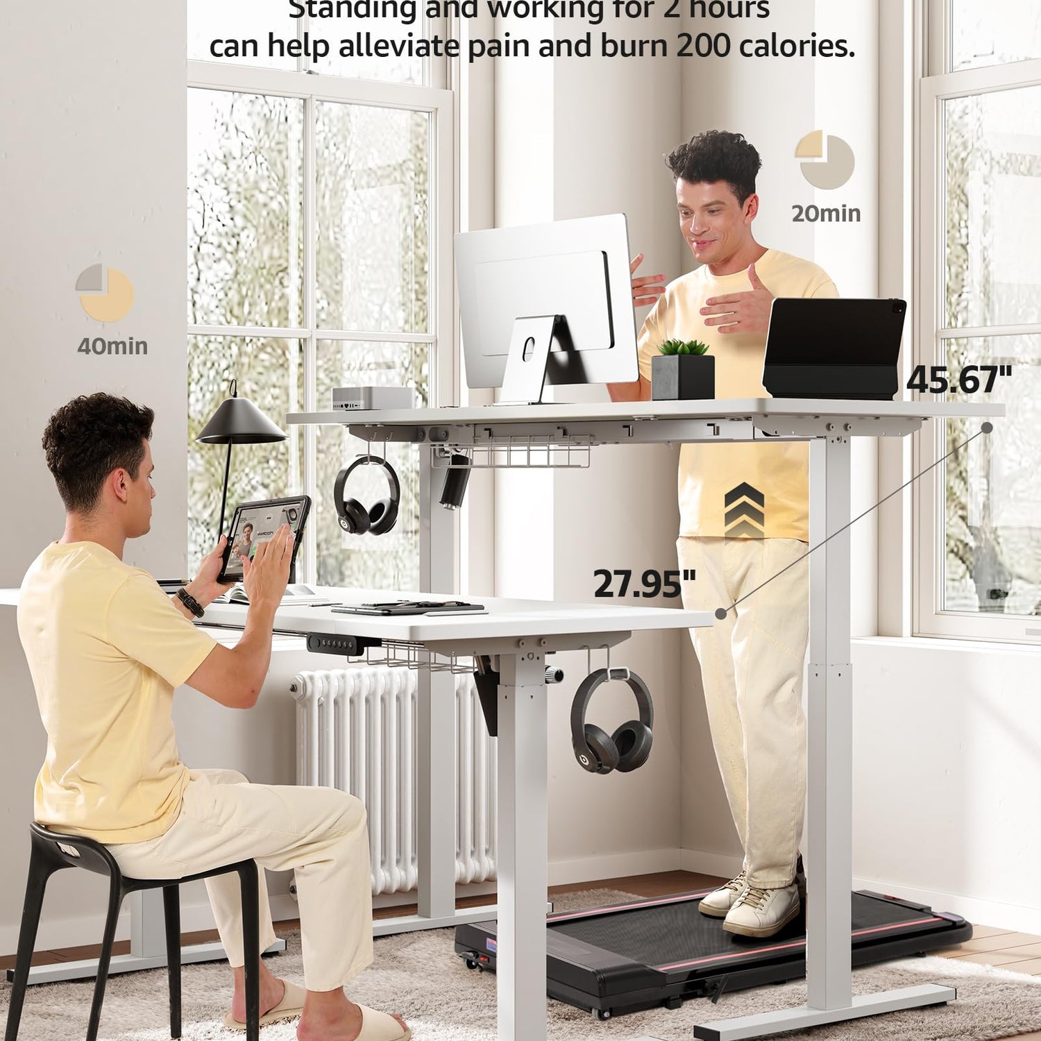 - Adjustable Height Desk : Effortlessly transition from sitting to standing with just the touch of a button (27.95" to 45.67") to add comfort throughout the day. SIAGO stand up desk is a great tool on your path toward stay active, healthy and productive.