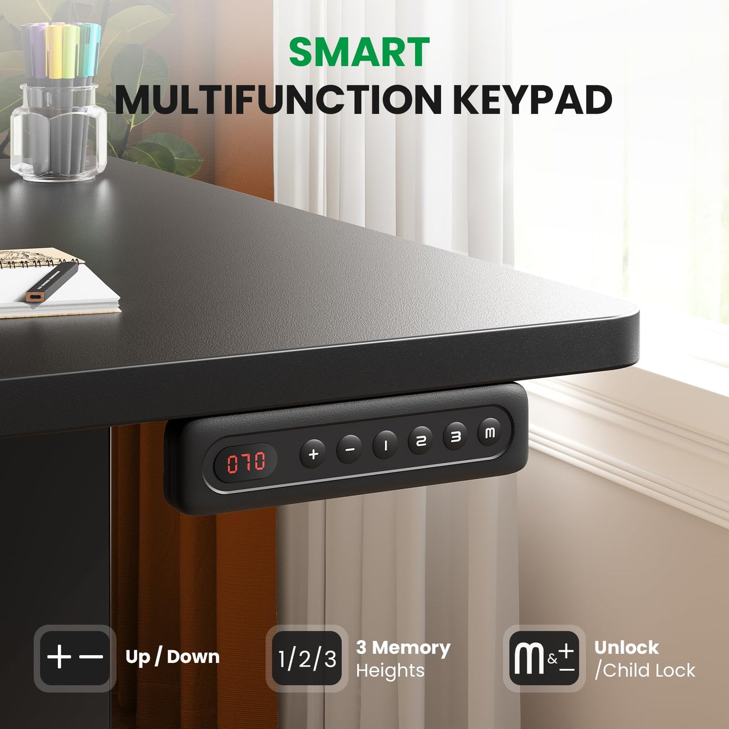 SIAGO Electric Standing Desk Adjustable - 55 x 24 Inch Sit Stand up Desk with Cable Management - 3 Memory Preset Adjustable Height Table