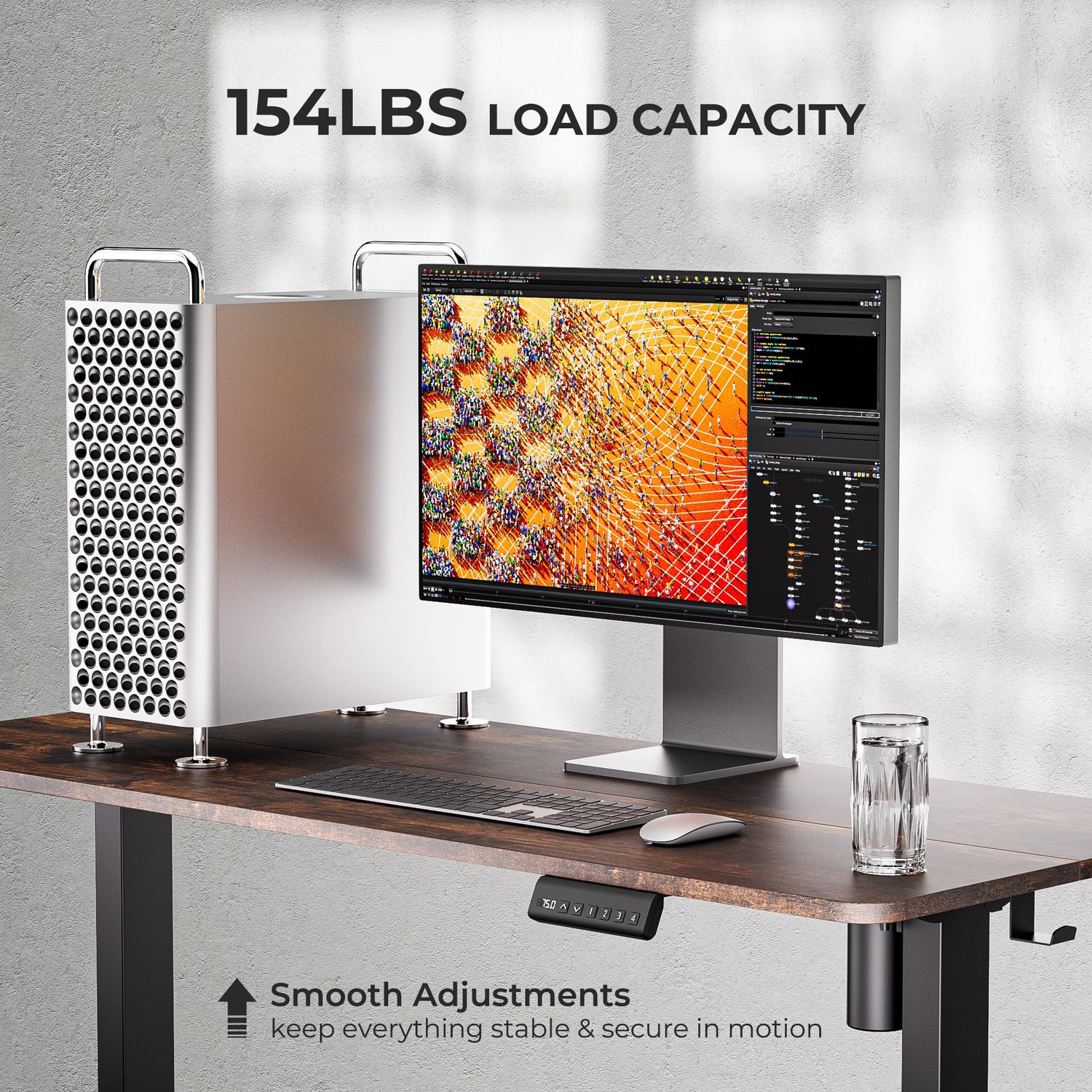 - 【Smooth Adjustments】Experience the freedom to choose your desk height, ranging from 28.74" to 47.63". Easily recall your preferred height by pressing "s" and setting it using the three memory buttons.