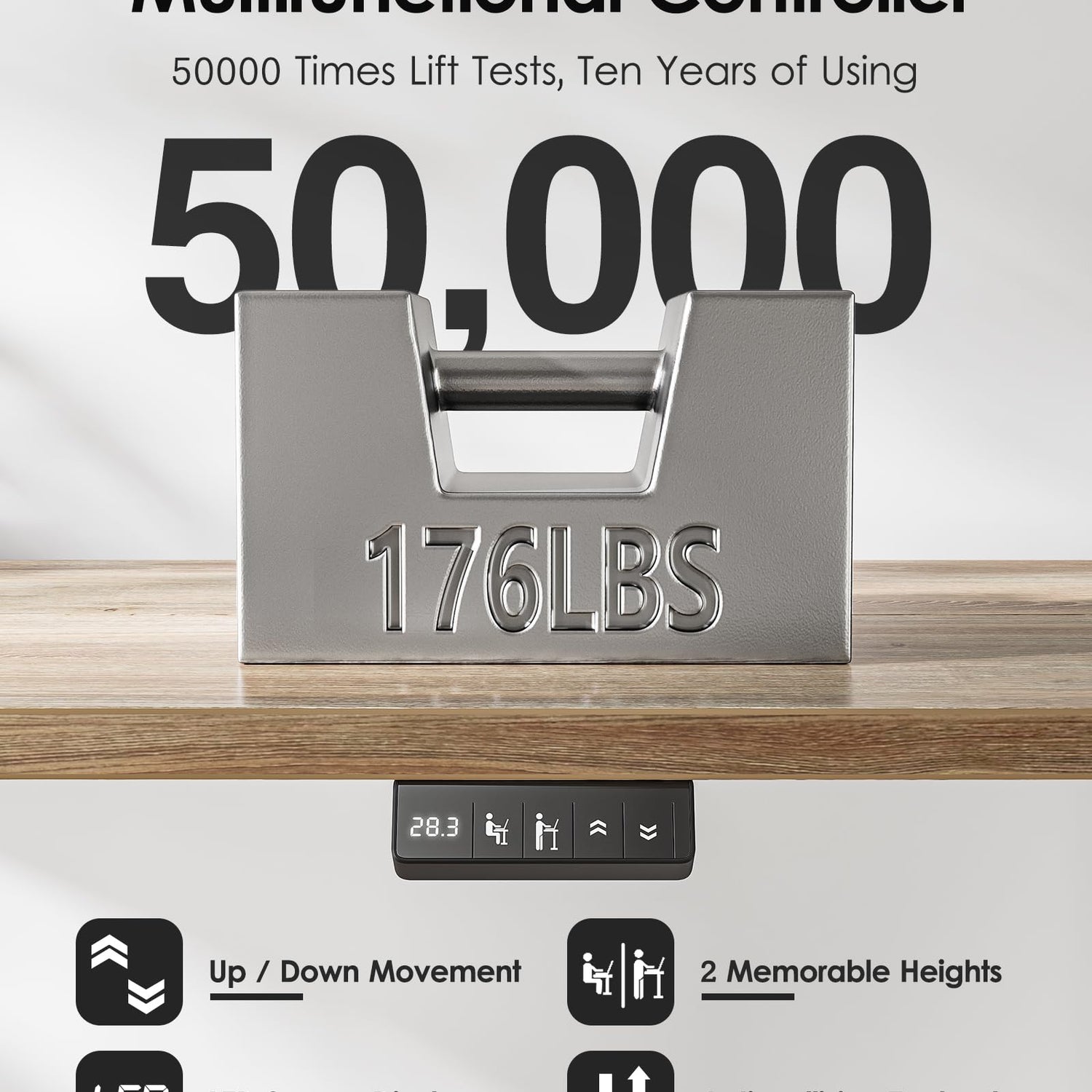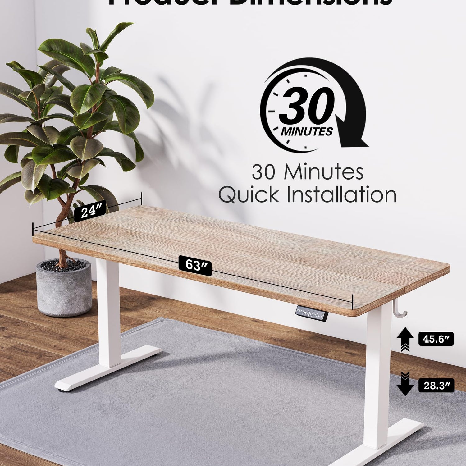 TIQLAB Standing Desk 63 x 24 inch, Electric Height Adjustable Desk with Splice Board, Stand Up Desk, Sit Stand Desk Computer Desk for Home Office, White Frame/Maple Top