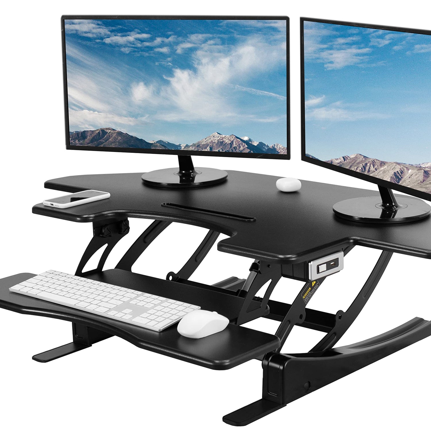 - VIVO Desk Riser Solutions - We create affordable ergonomic setups designed with creativity and quality to help transform your unique workspace! This corner riser sits on top of your current desk, allowing you to sit or stand on demand. --Patented--
