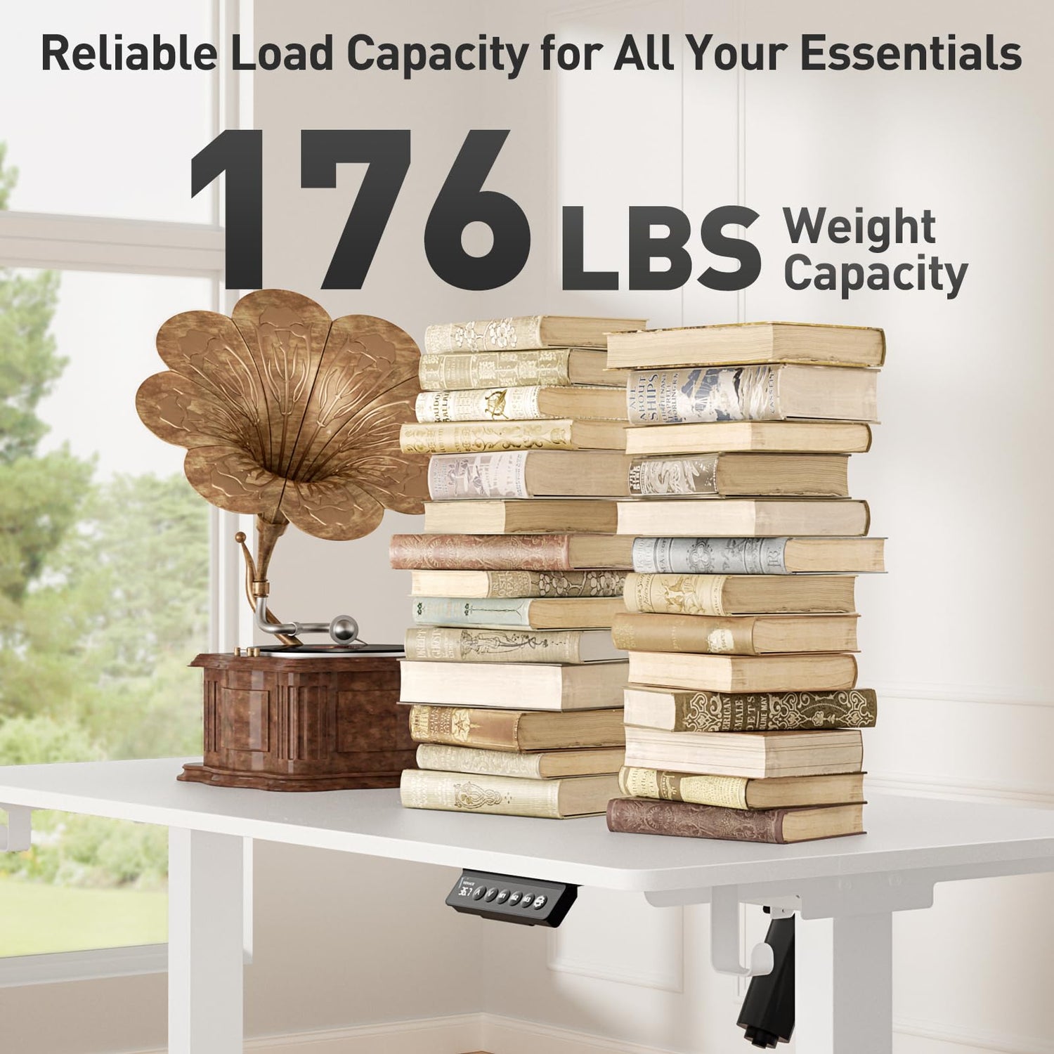 - Industrial Strength Design: Heavy-duty steel frame holds 176 lbs on this standing desk, providing exceptional stability for all your work essentials