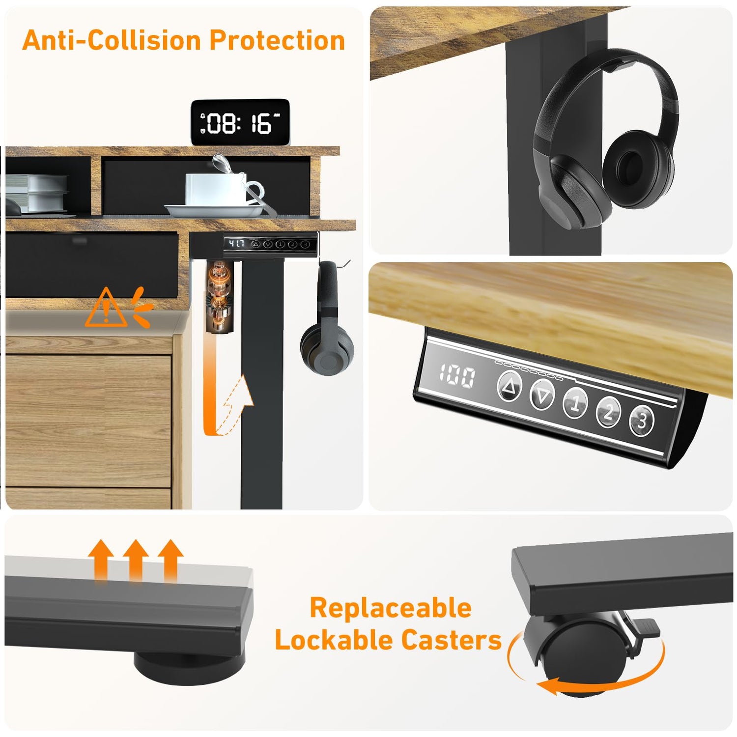 • Ergonomic Sit Stand Desk - The electric standing desk is equipped with a newly upgraded motor that could support desk up & down 20,000 times, the desk height can be adjusted from 27.6" to 45.7". The sit to stand desk also set an easy to use control panel with LED display and 3 memory buttons that adjust the height you want.