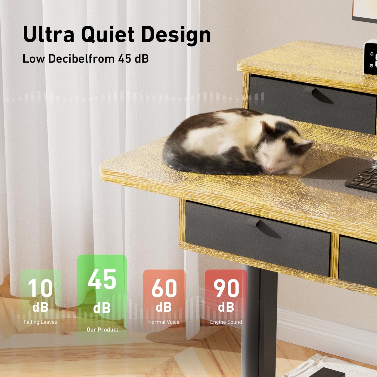• Strong 290 lbs Support - The adjustable standing desk built with a wider sturdy desktop, double load-bearing beams and industrial-grade steel frame , this desk is able to support up to 290 lbs with maximum stability. Maximum lifting speed: 20mm/s, no-load noise≤45db. Suitable for office, living room, study, bedroom and other spaces that need liftable desk while standing.