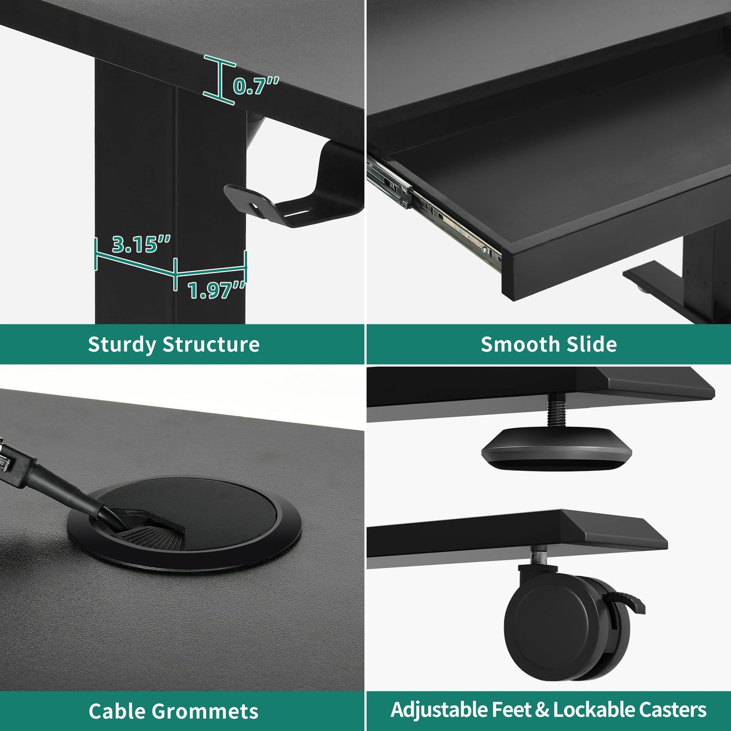 - Electric Standing Desk Adjustable Height: Freely select electric standing desk height, from 27.55" to 47.24". Save your favorite four settings and smoothly switch between them