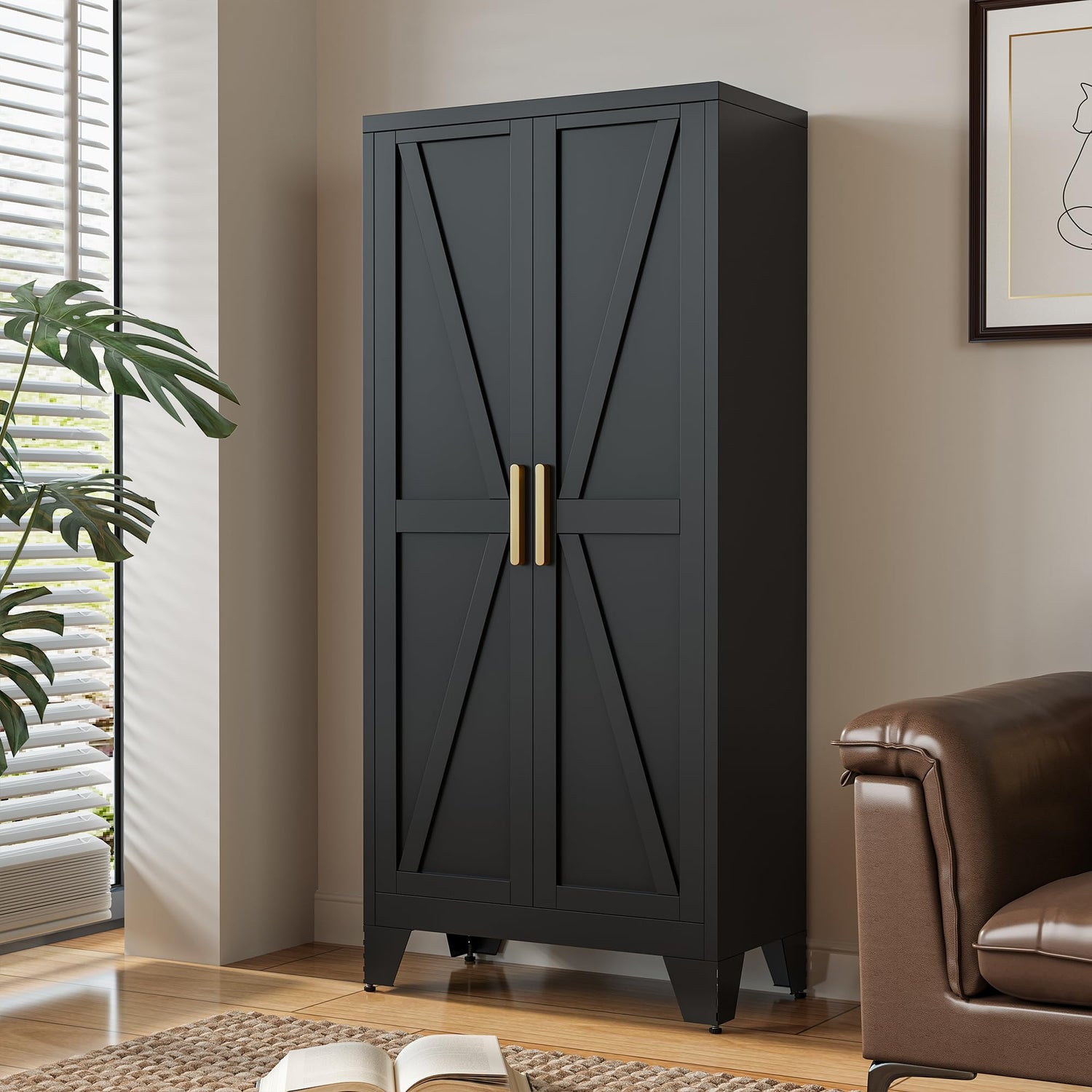 - Rustic Farmhouse Design: The door panels of this metal cabinet feature a charming farmhouse design, blending traditional elegance with modern practicality. The aesthetic appeal of the cabinet makes it both a functional and decorative piece