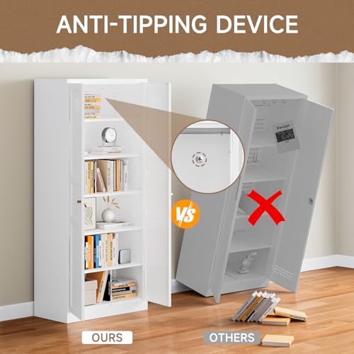 AFAIF Metal Storage Cabinet, 71'' Tall Storage Cabinet with 2 Doors and 5 Adjustable Shelves, Modern Pantry Cabinet for Kitchen, Living Room, Dining Room, Bathroom, White
